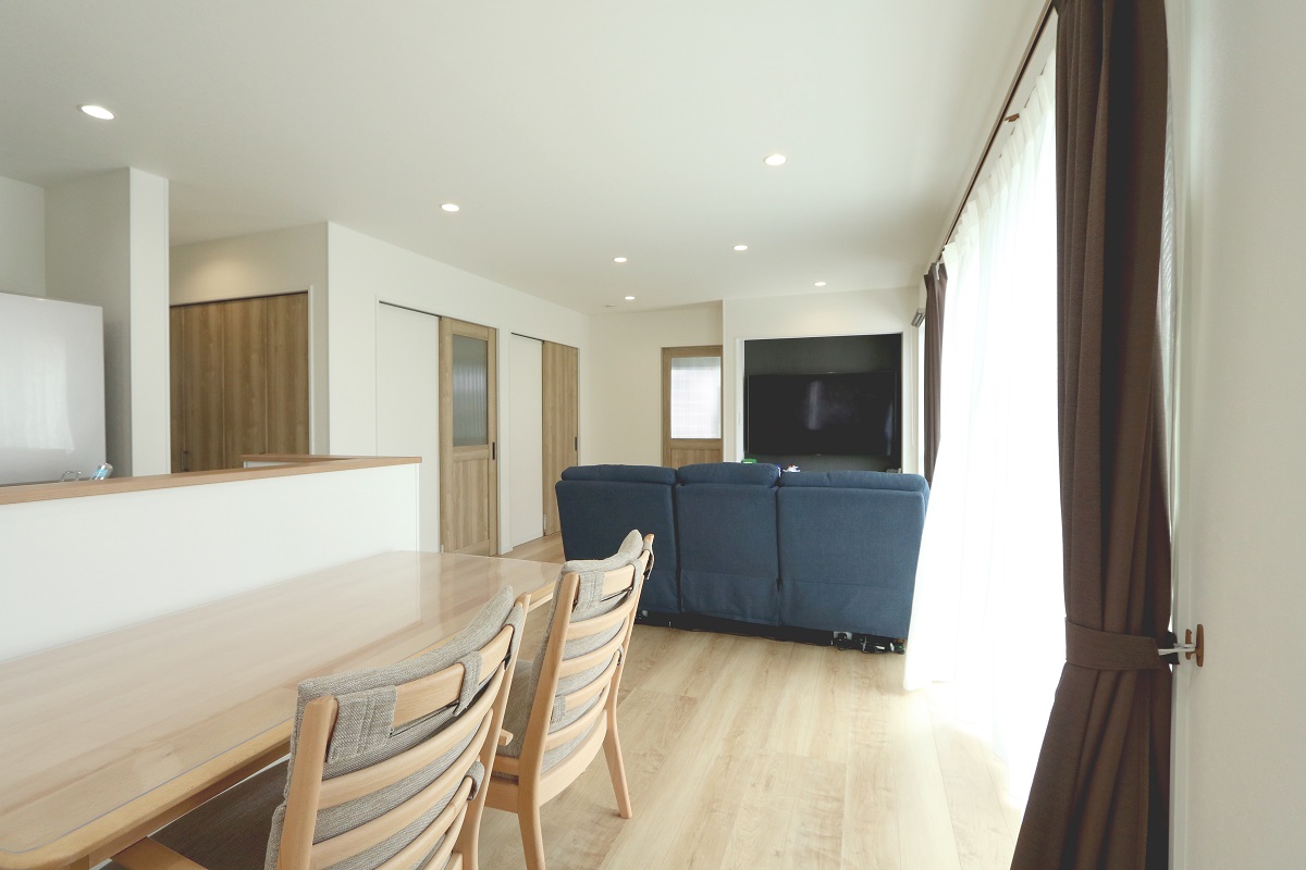 ホワイトカラーで清潔感ある空間と憧れのアイランドキッチンのある家