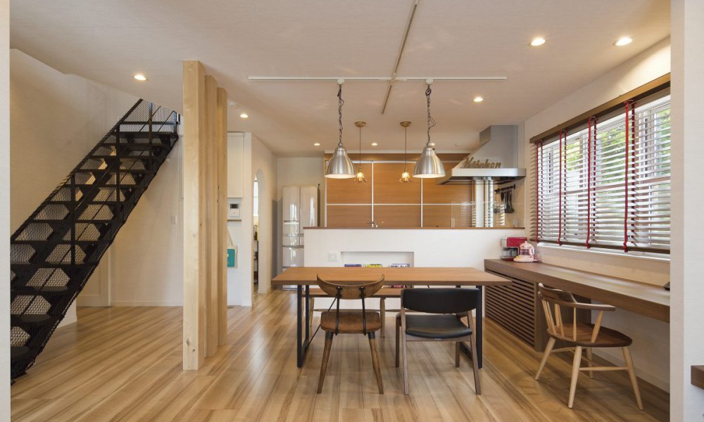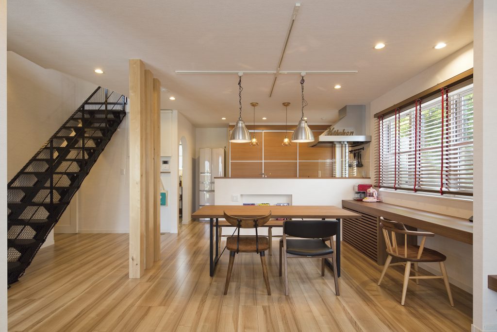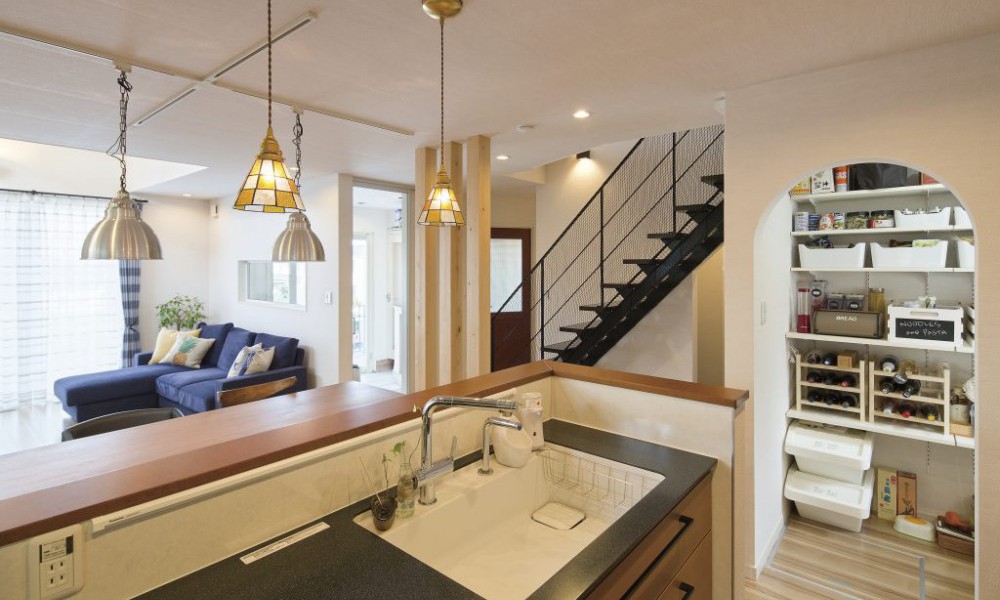 スケルトン階段やパントリーのアール下がり壁などを取り入れました。