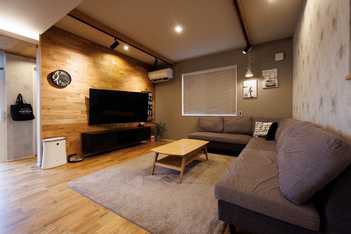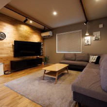 塗感のあるクロスに木の風合いや重心の低さを出しながら、アイテム一つひとつの素材感を大切に、落ち着きある空間に仕上がりました