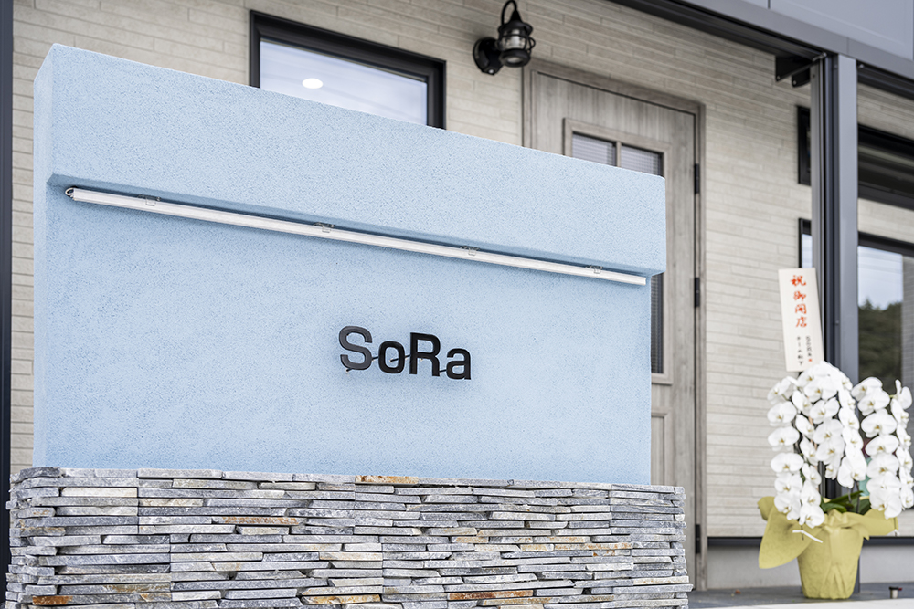 石積みの質感とブルーのサインでサロンの個性と想いを描く
