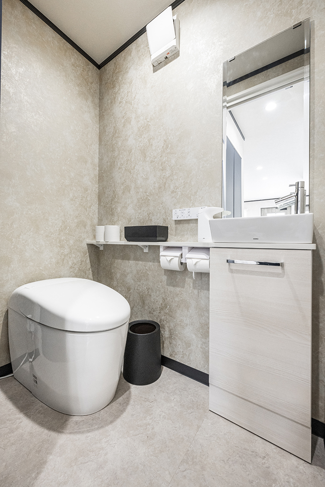 シンプルな美しさが際立つ、快適なサロンのトイレスペース