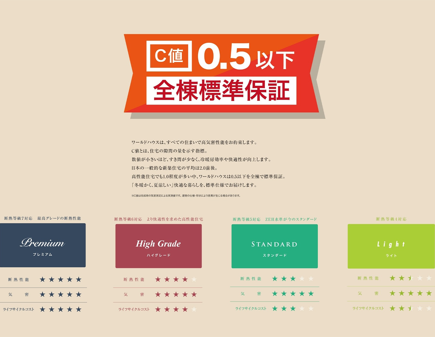 ワールドハウスでは、安心の基本構造をベースにお客様のこだわりやライフスタイル、ご予算に合わせてお選びいただけます。