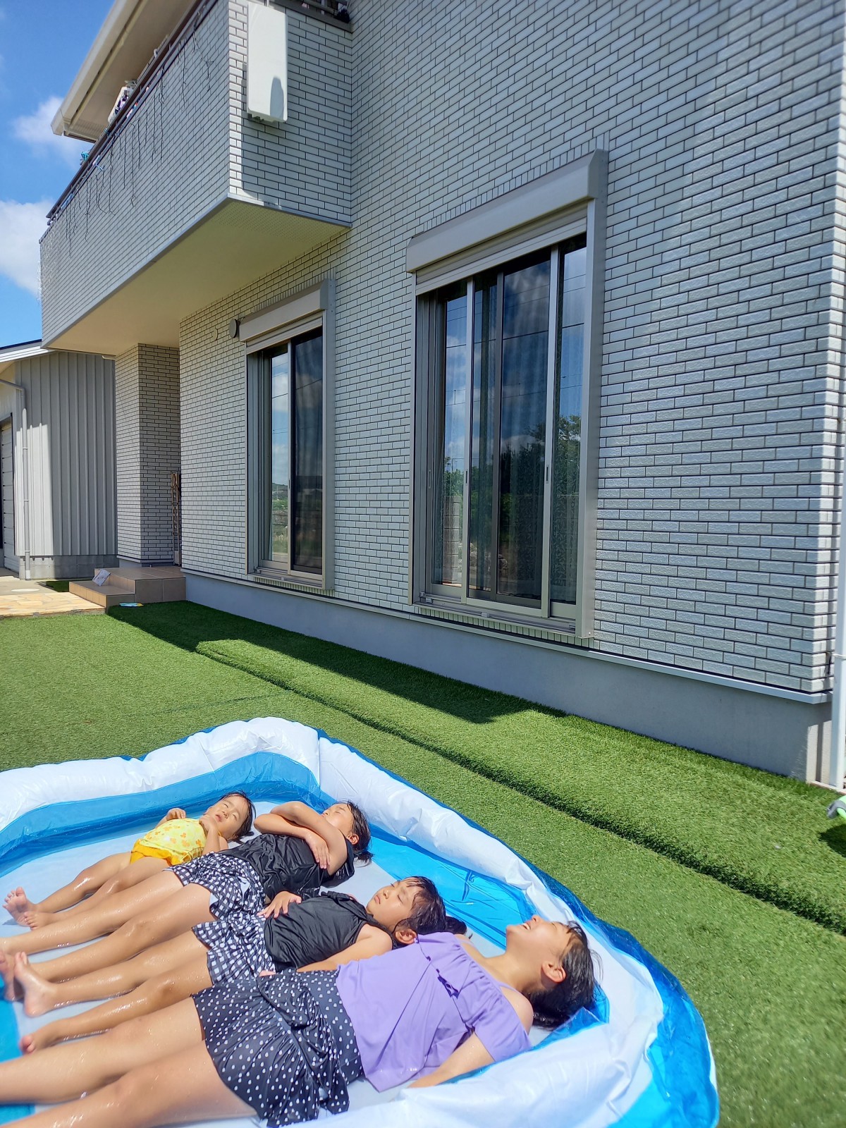 コメント:日差しを沢山浴びて、夏を感じる姉妹達。『あっついな~!!』と言いつつも、終わらないプール。片付けがなかなか進まないよ~(* ̄ー ̄)