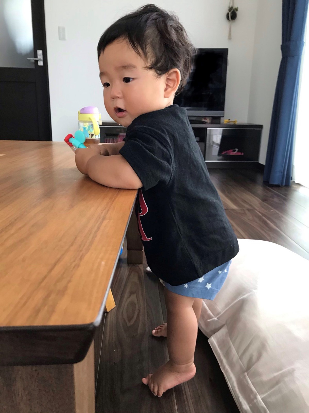 1才になり、初めて靴を履いてお外へ!外で歩くのが楽しかったのか、はしゃいでずっと歩き回ってました☆