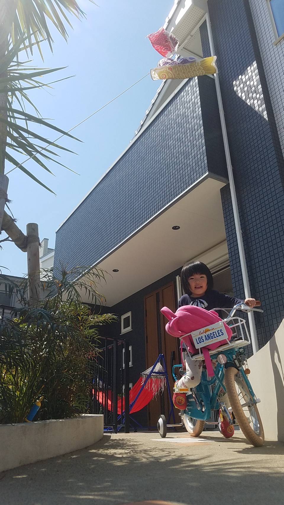 我が家のこいのぼりは吹き抜けで泳いでいます。家族で自粛中です。
