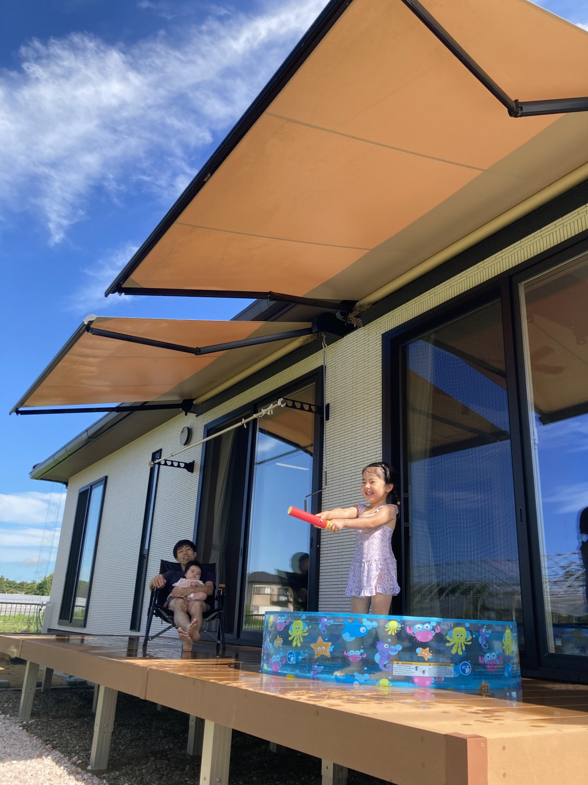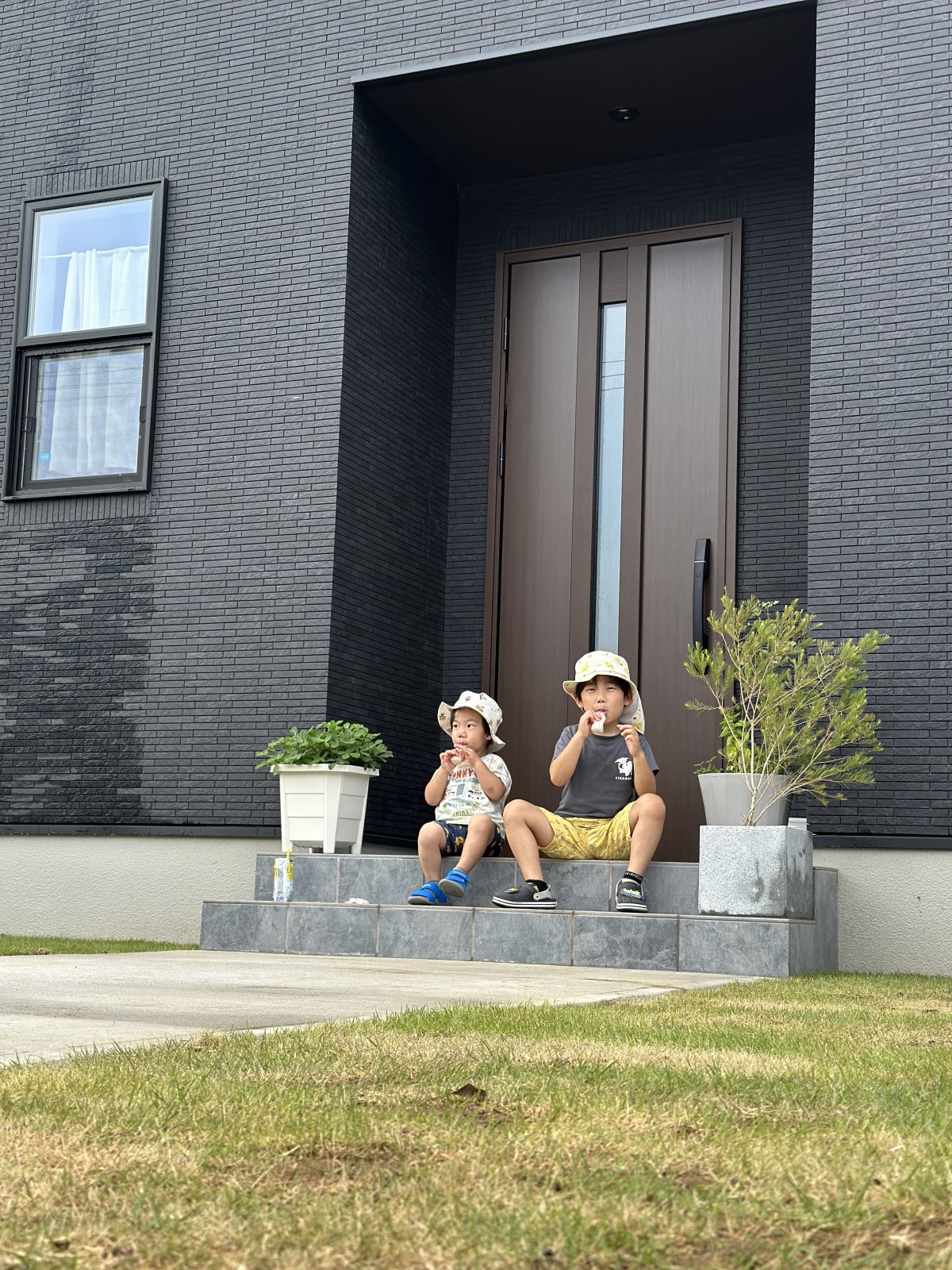 この夏に引き渡しを受けて、子ども達念願の庭ができました。「お庭でアイスを食べたい!」という子ども達の夢を叶えることができて嬉しかったです。