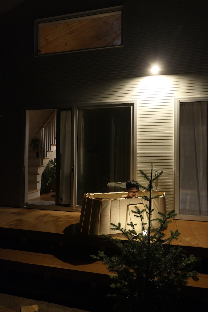 広めのウッドデッキで、キャンプ気分を色々楽しんでいます。