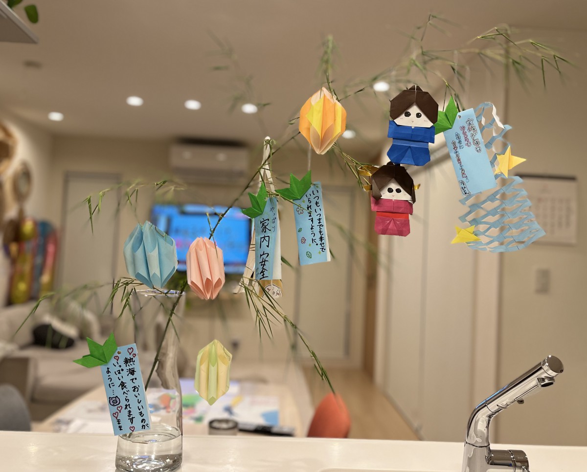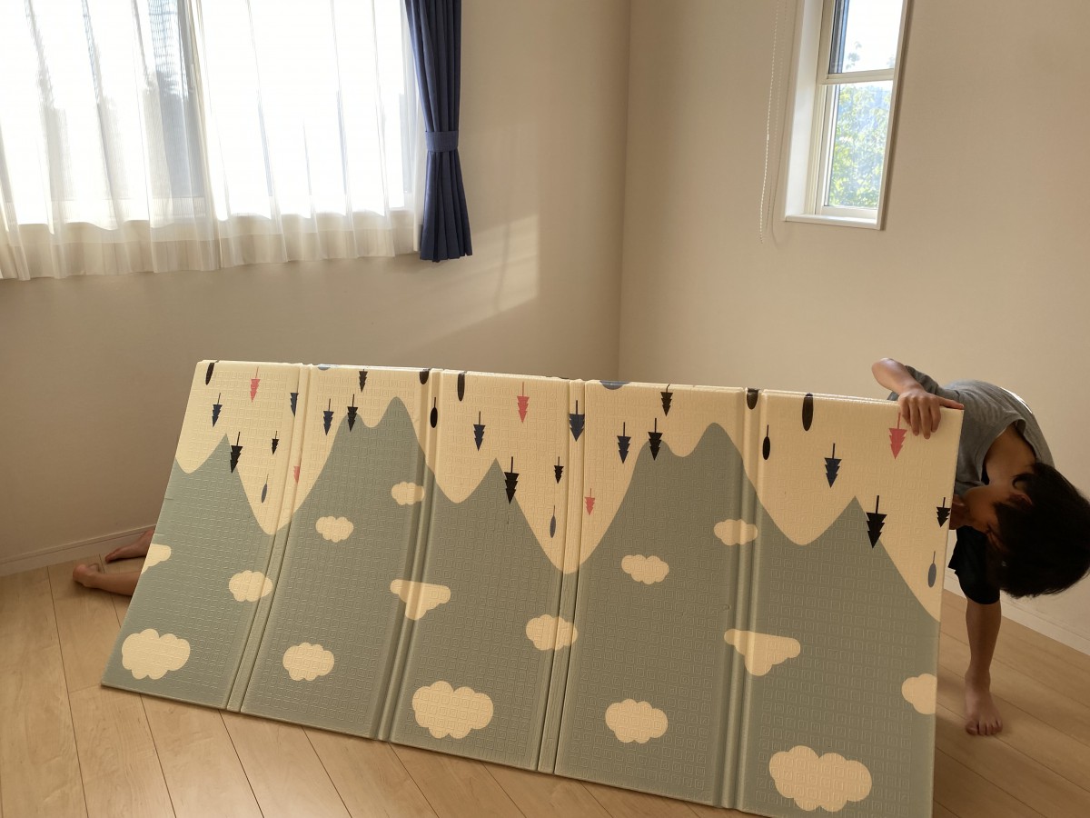 夏は2階の寝室が暑くなるので、1階リビング横の和室で家族3人で寝ています。