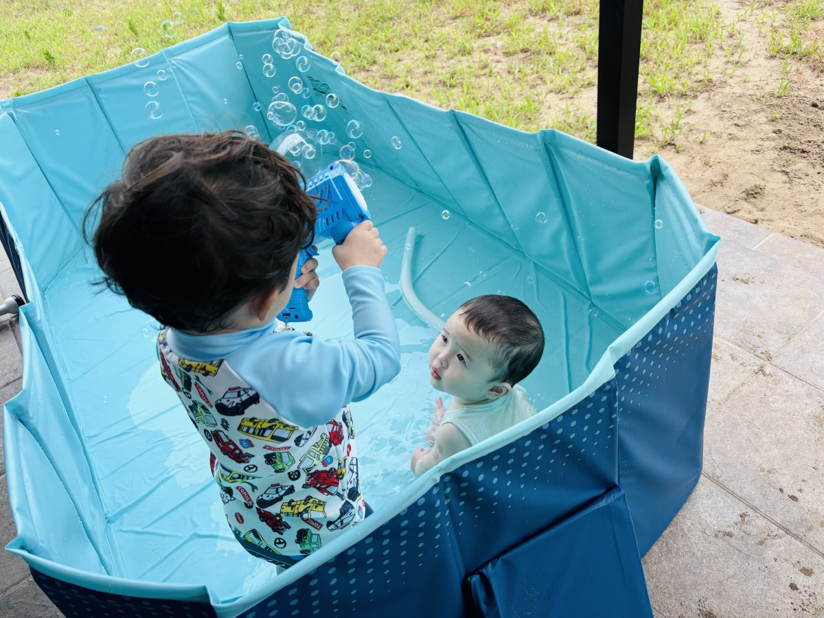 夏本番、兄弟2人で朝から水鉄砲遊び!!