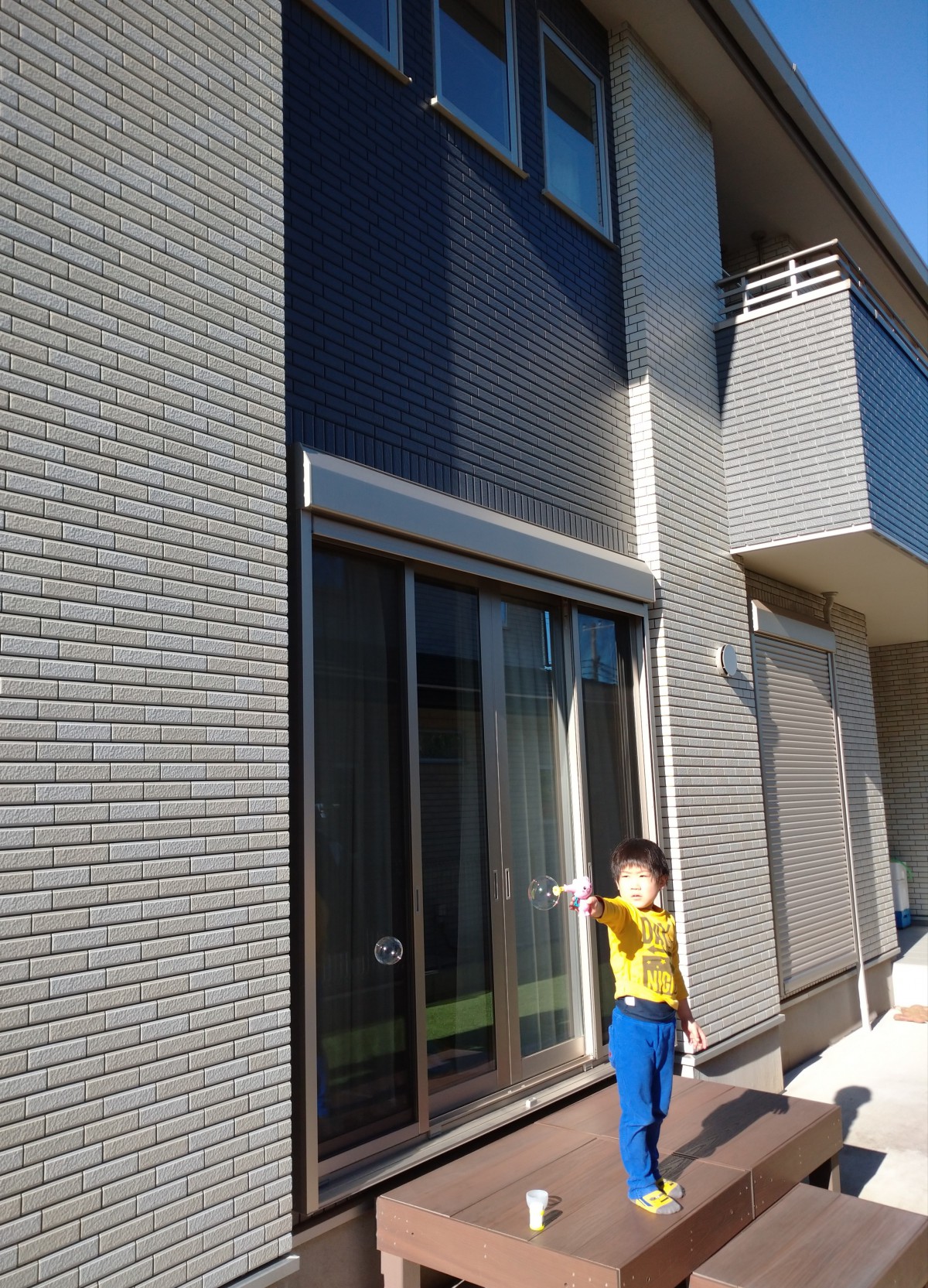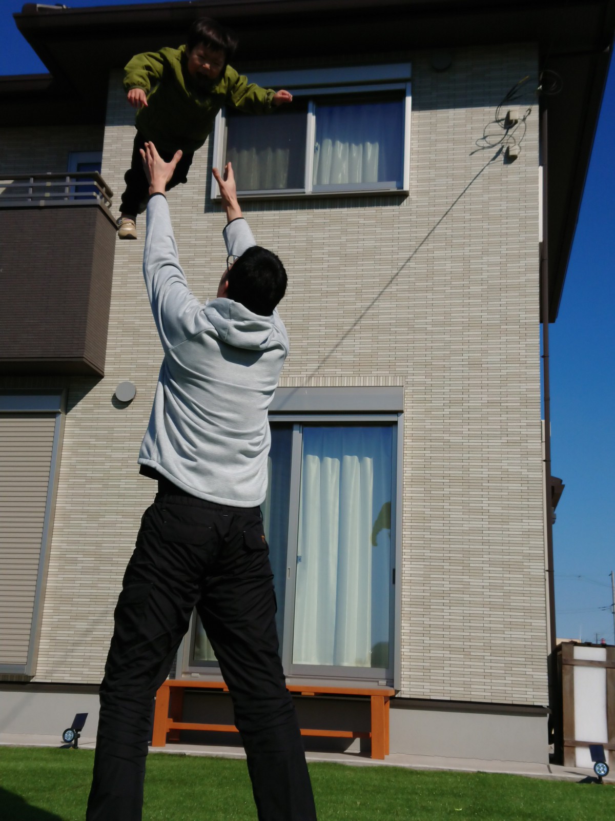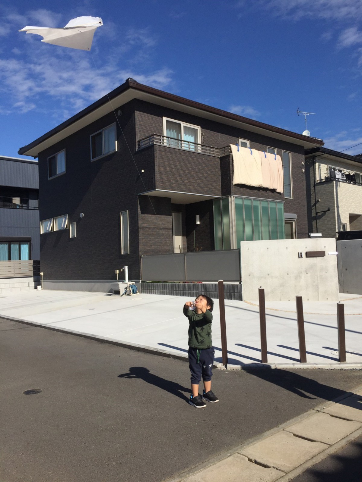新居の前で新年一発目のジャンプをしてみました^_^ -