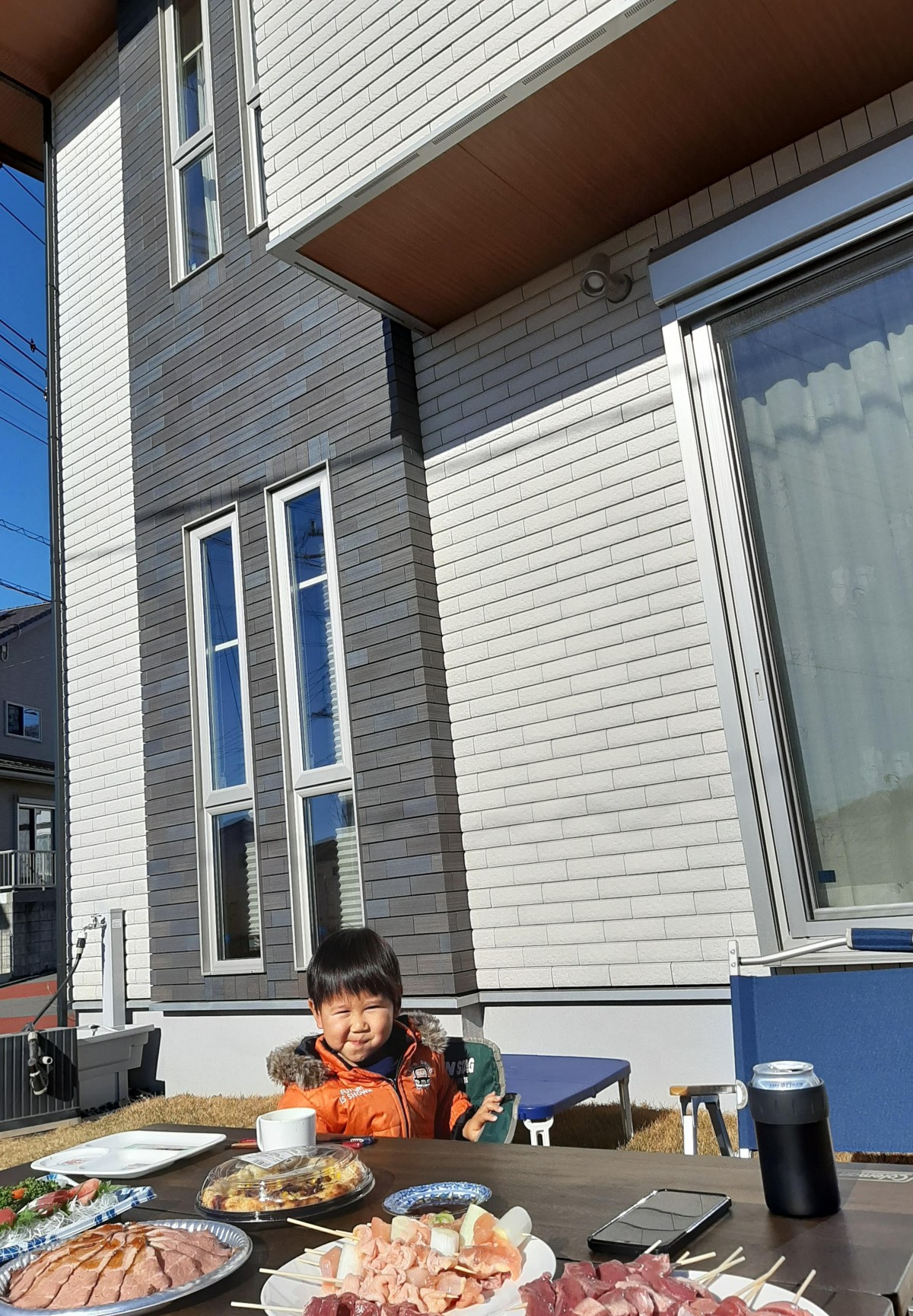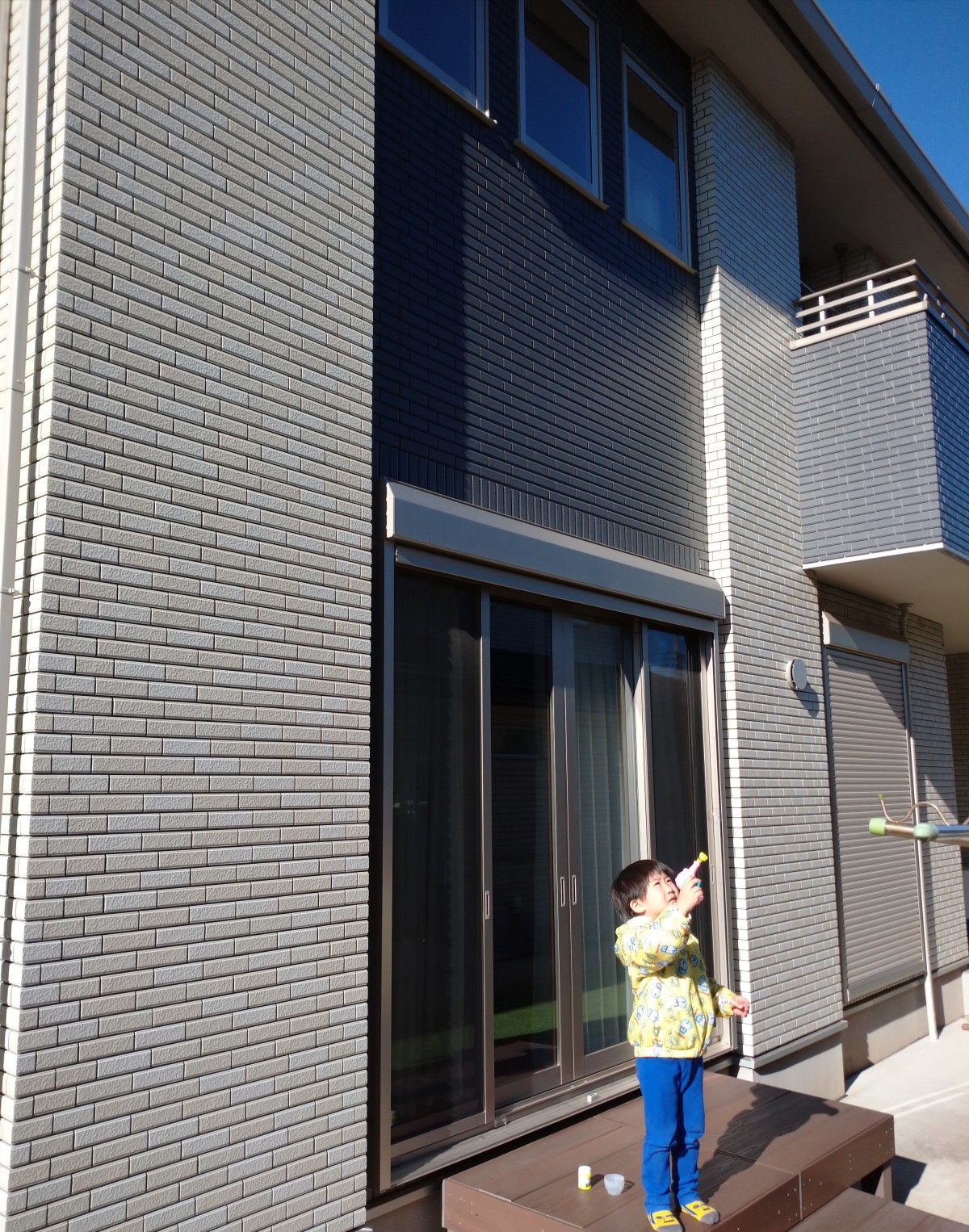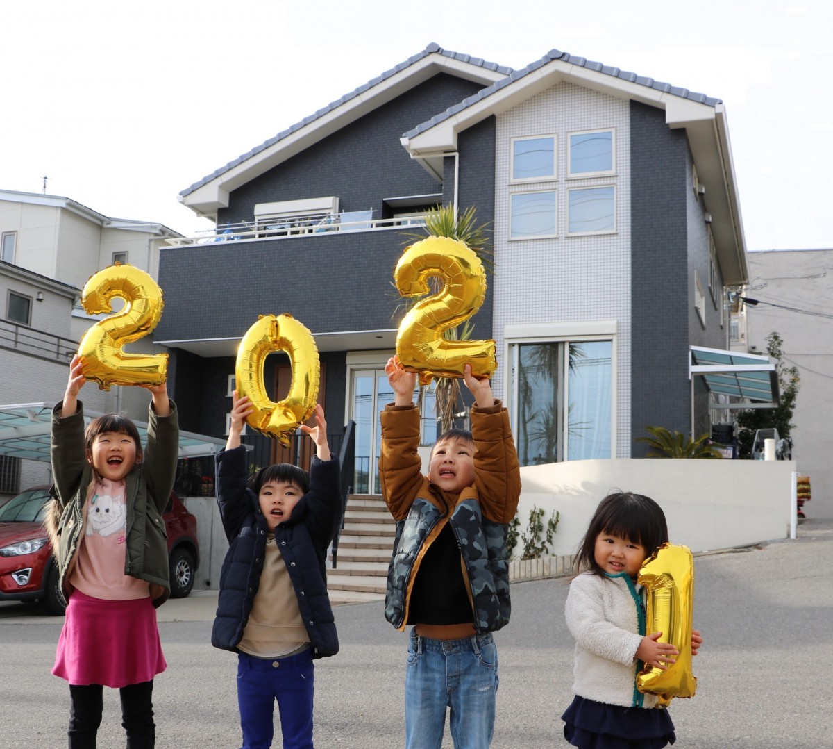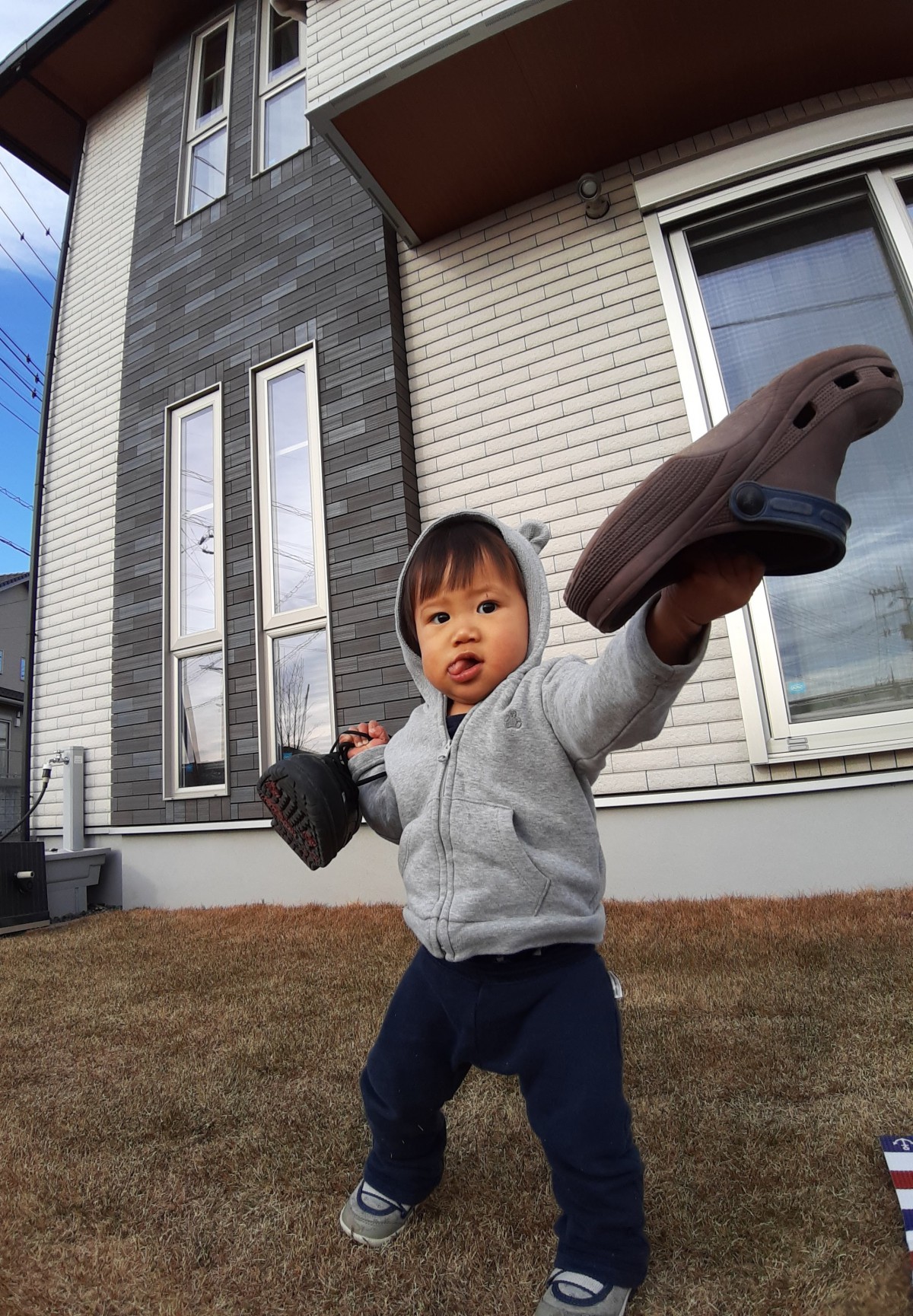 新居の前で新年一発目のジャンプをしてみました^_^ -