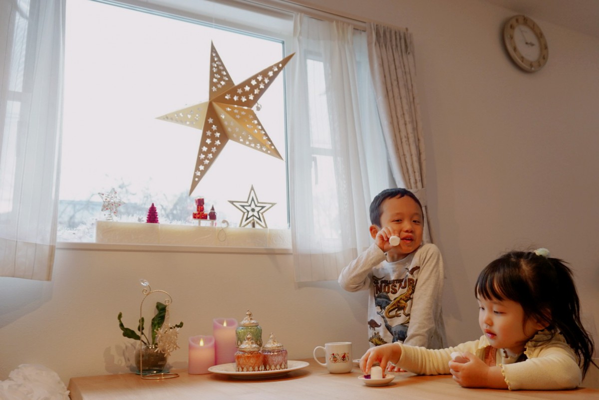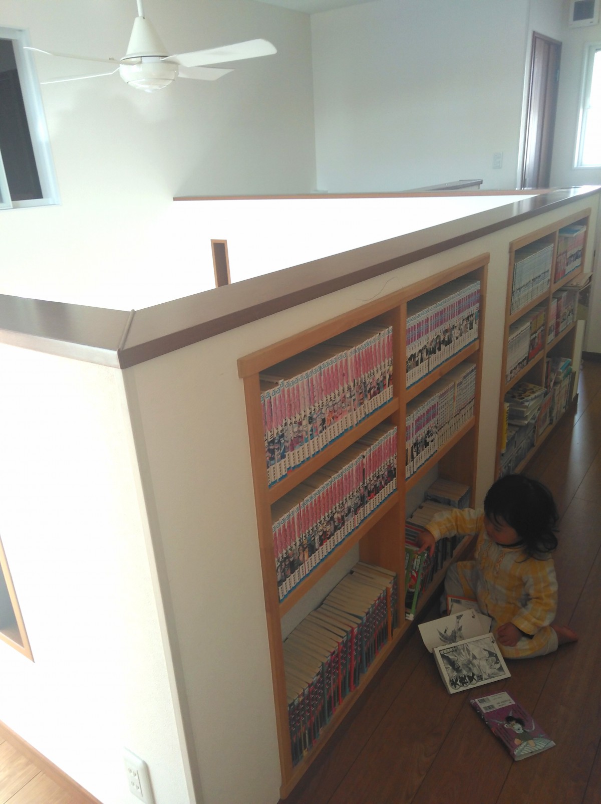 我が家は、4人の子供達の習字や絵画などの芸術作品で溢れています! どの作品も味わいがあって、私は大好きです! 子供達の作品が映える、素敵なお家を作って下さってどうも有難うございました!