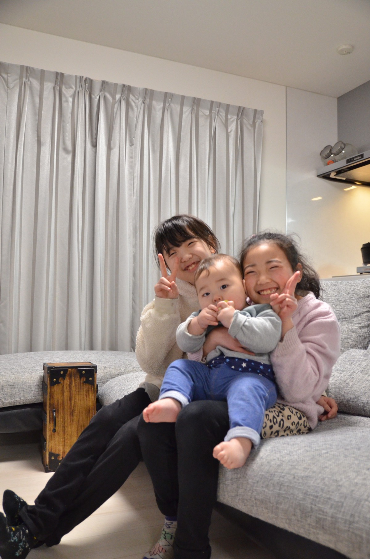 歳の差がある弟が産まれた事で上の2人は急にお姉ちゃんになってよくお世話をしてくれています。