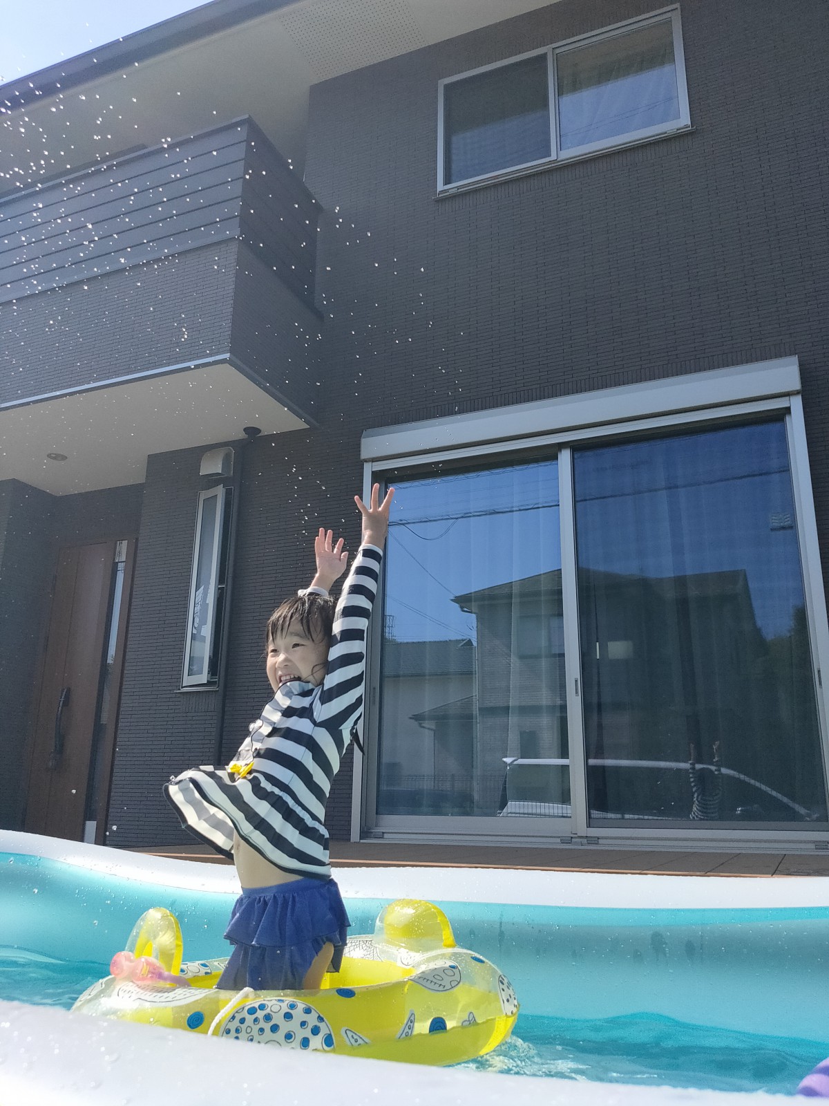 毎年恒例の庭プール!昨日も今日も明日もプール。疲れ知らずのこの弾ける笑顔で、夏バテも飛んでいきます!!