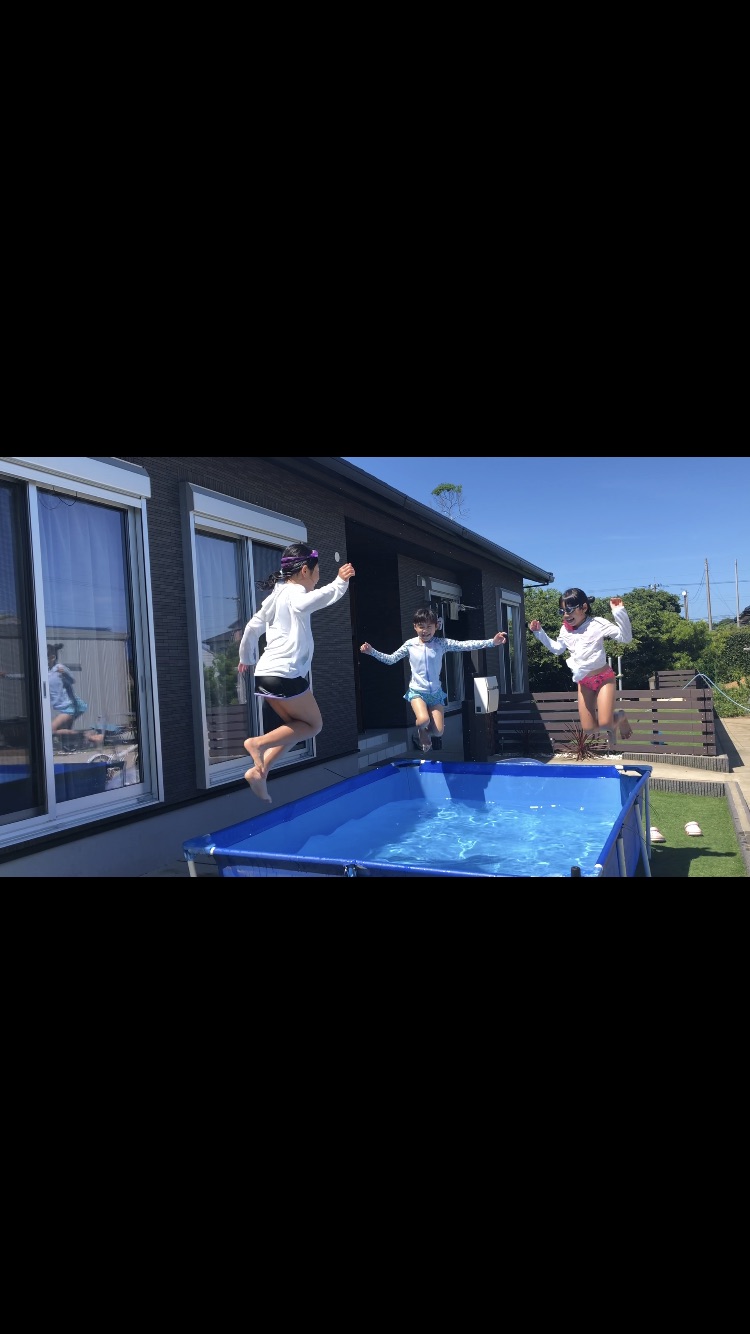 お庭でお友達と一緒にプールに入ってる時に良い写真が撮れました!