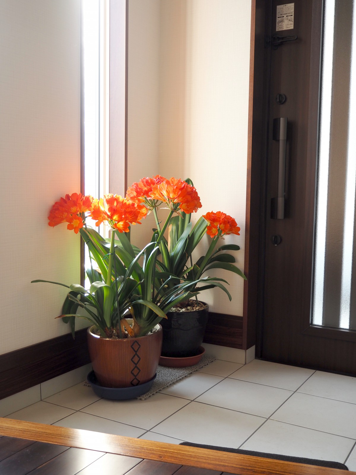 太陽の光が差し込む玄関では、いろいろな植物がお客さまをお出迎えしています。 -