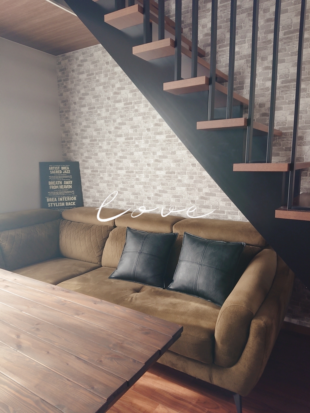 リビングの階段下のスペースにソファーがぴったり収まり✨何とも言えない落ち着き感…