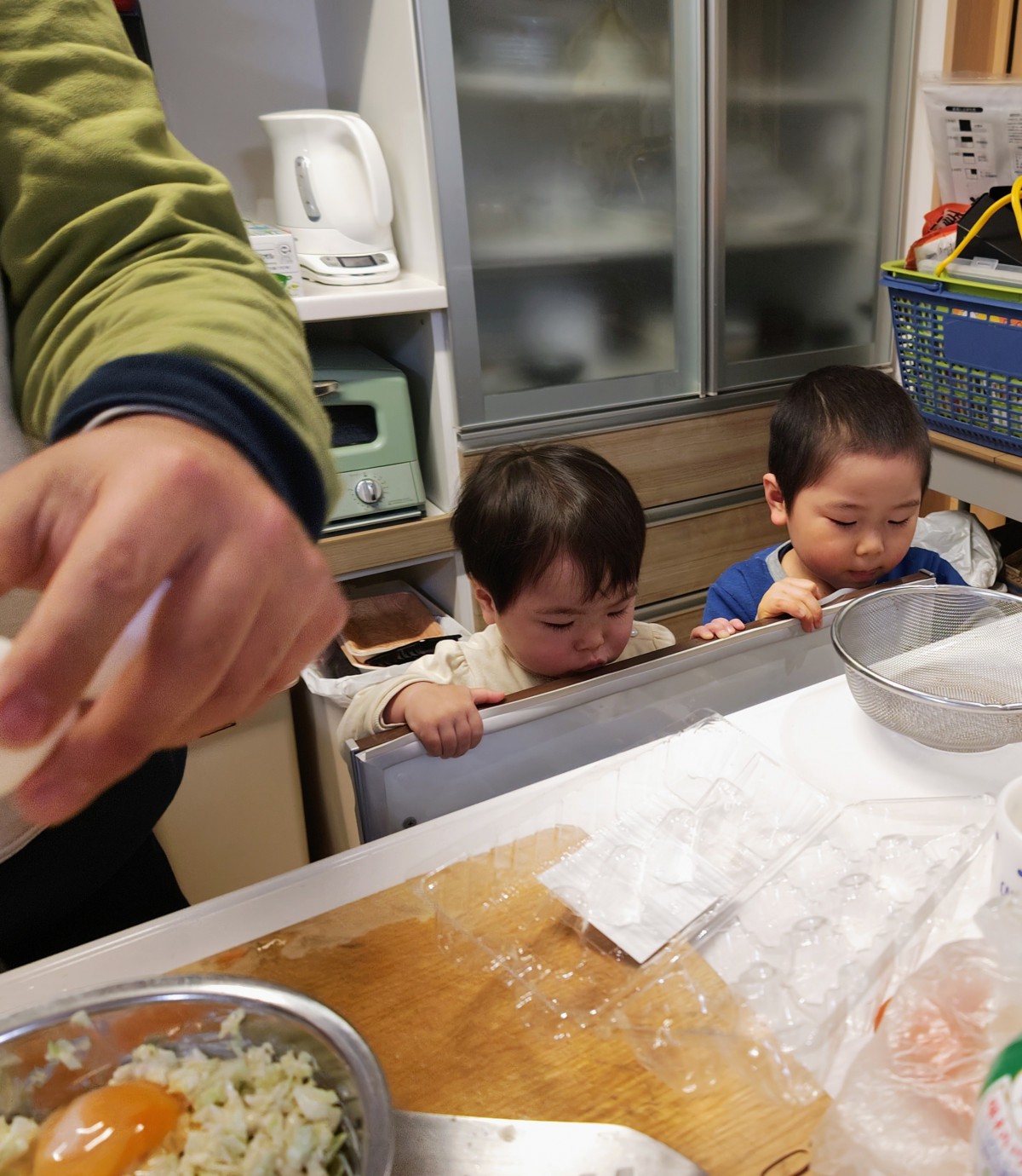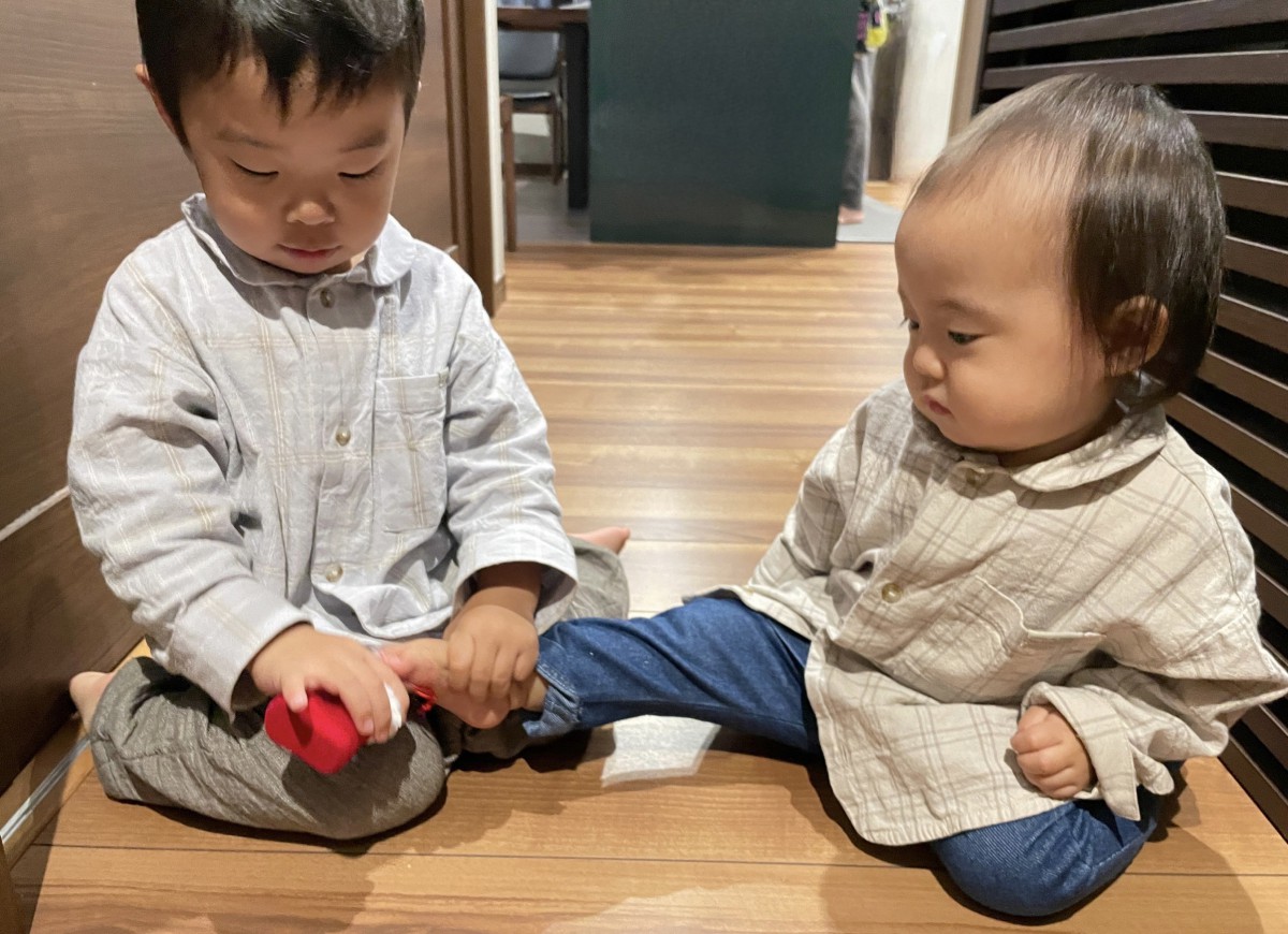 2人で並んでママが子供の頃に使っていたピアノを設置してピアノタイム。