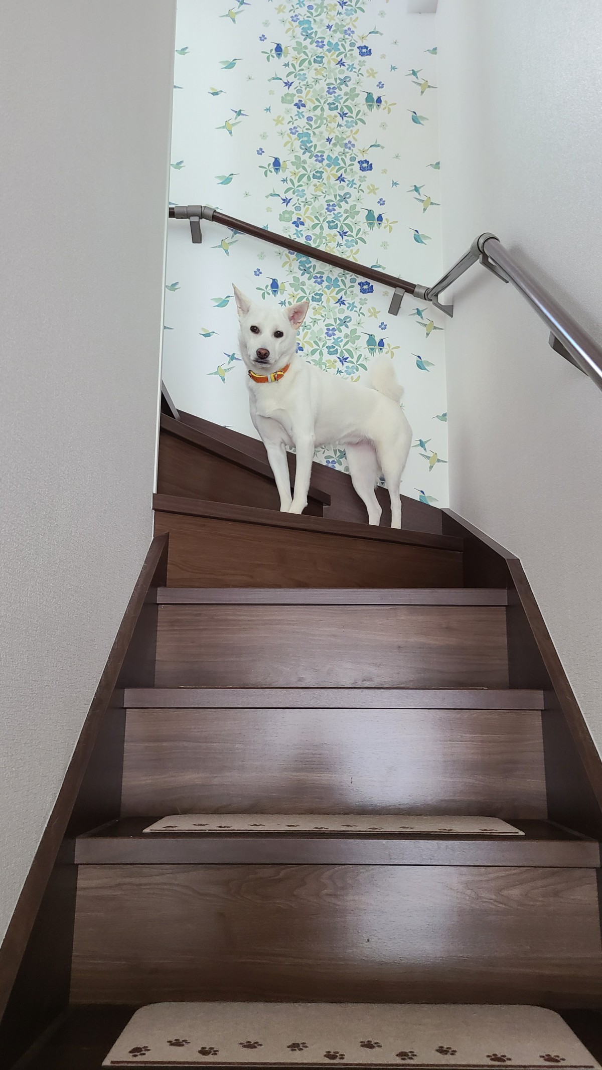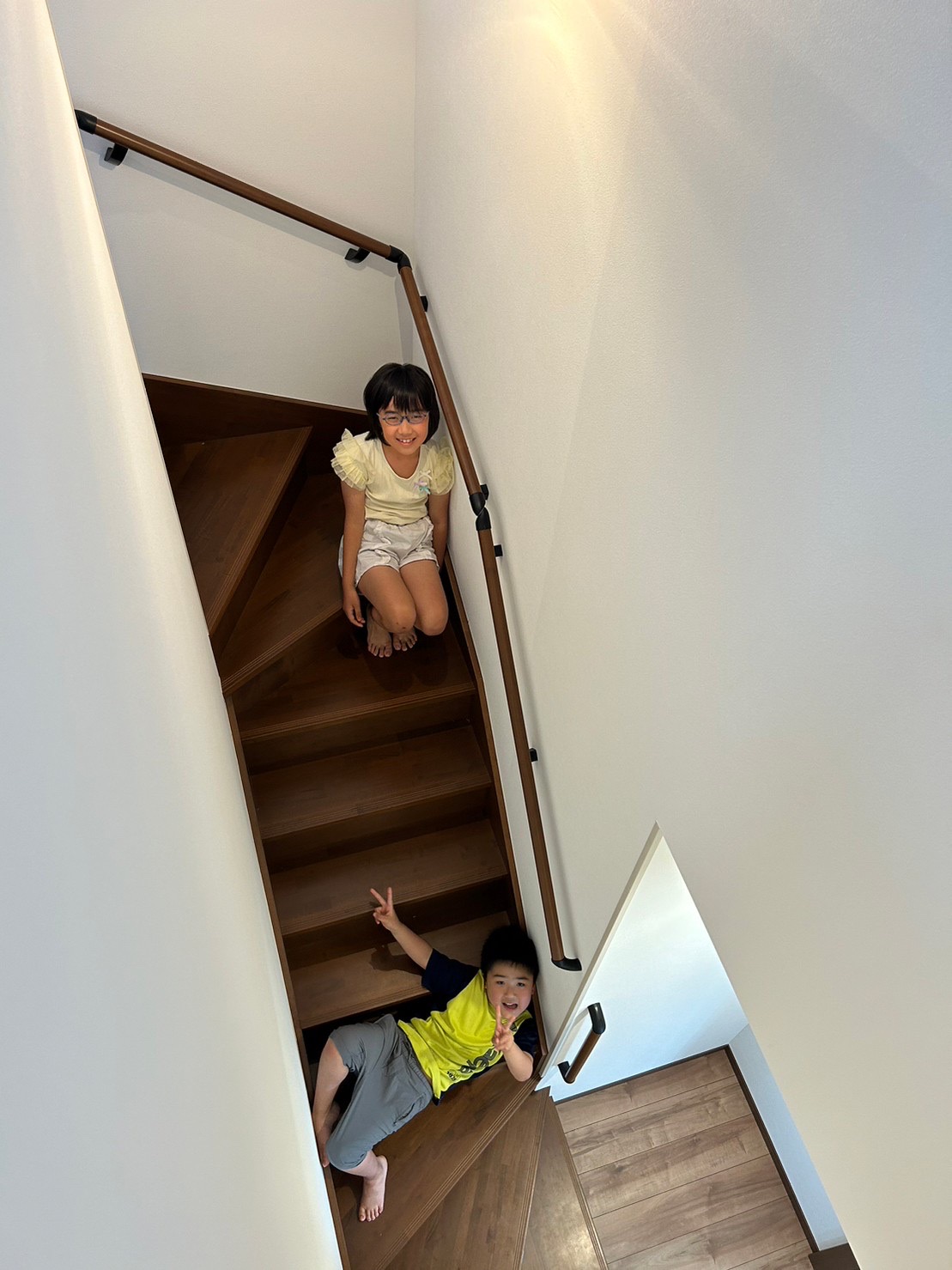 なんでか?階段の途中から降りてこない。