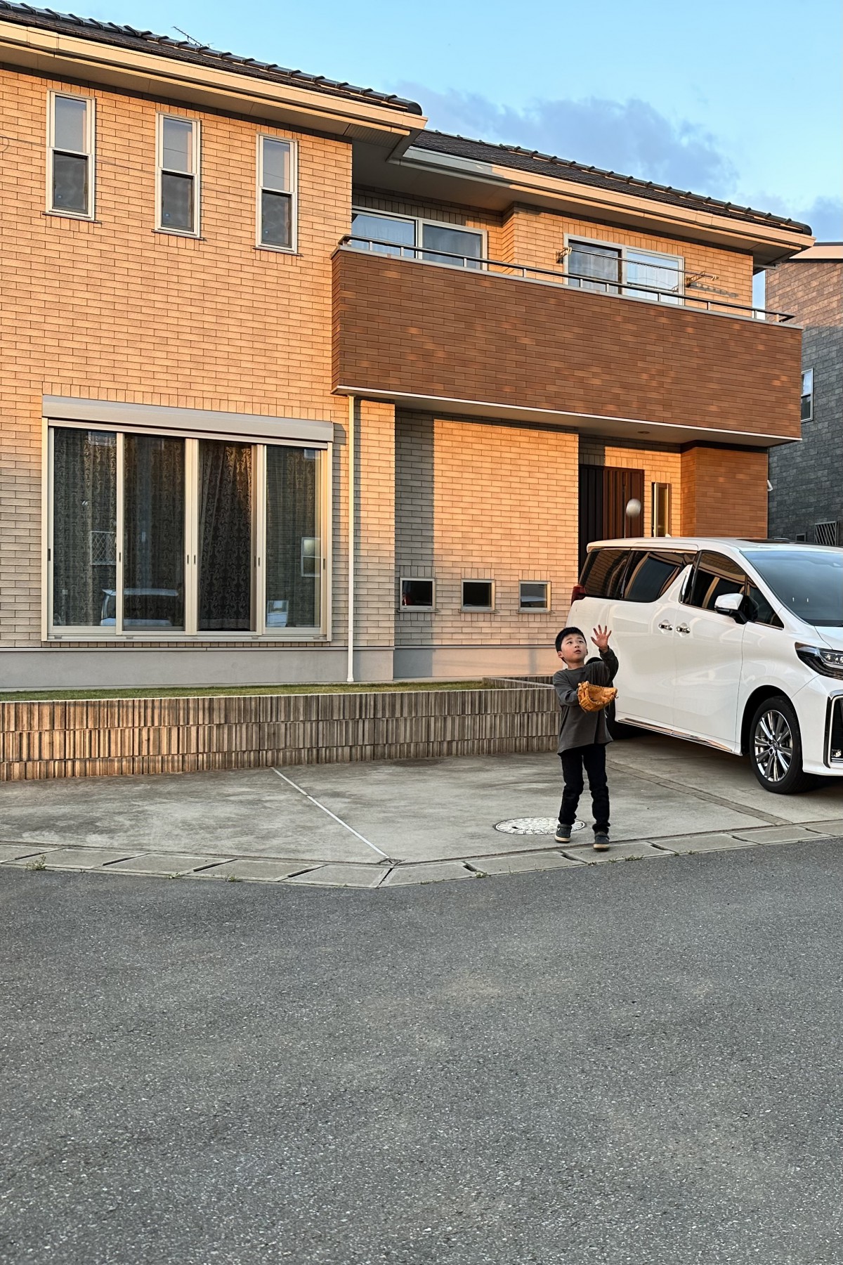 お家の前で練習中