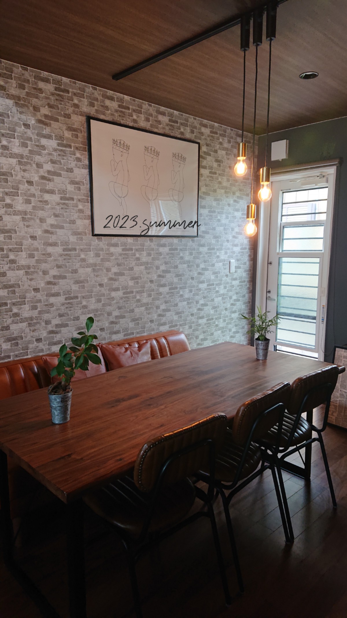 夏の朝はダイニング脇の勝手口の窓を開け、外の風をいれて朝食☕😃🌄お気に入りです✨天井、壁のクロスも迷いましたが、今のこの感じ✨が大好きです。あえて、横並びダイニングから一歩離した感じがとても使いやすいです。