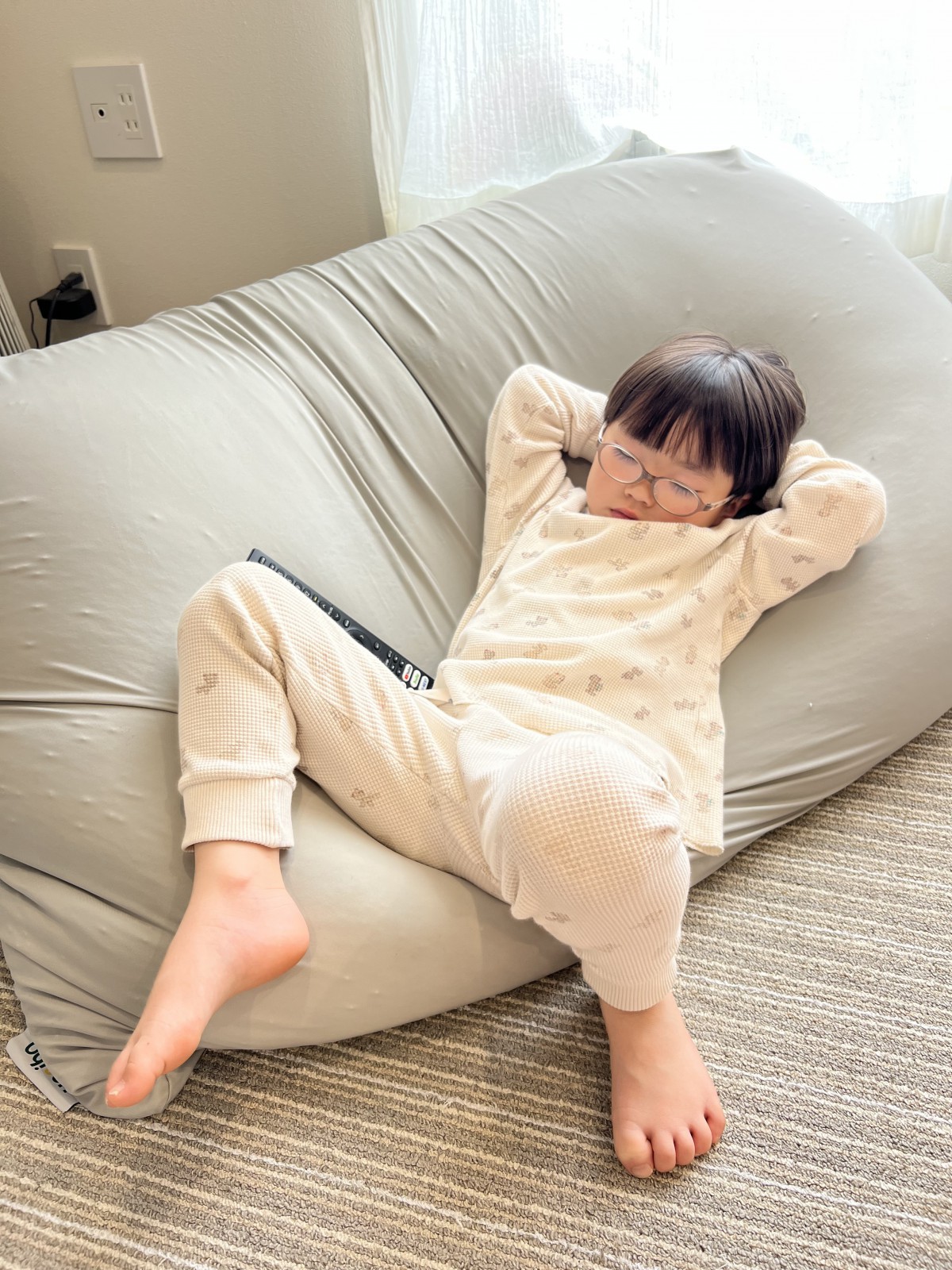 せっかくの広い空間なのに、2人で仲良くクッションの上で絵本読んでて楽しそう!