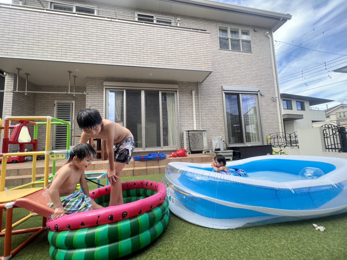 お気に入りのお庭で今からプール