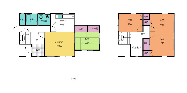 4LDK(6イニングキッチン6帖、リビング10帖、和室6帖、洋室8帖、6帖、6帖)