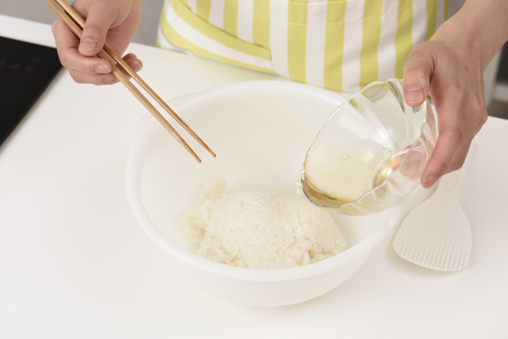 温かいご飯にすし酢を合わせてください。