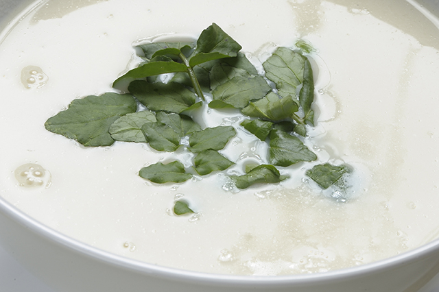 STEP3: [STEP2]に豆乳または牛乳を入れ延ばし、塩・コショウで味を整える。