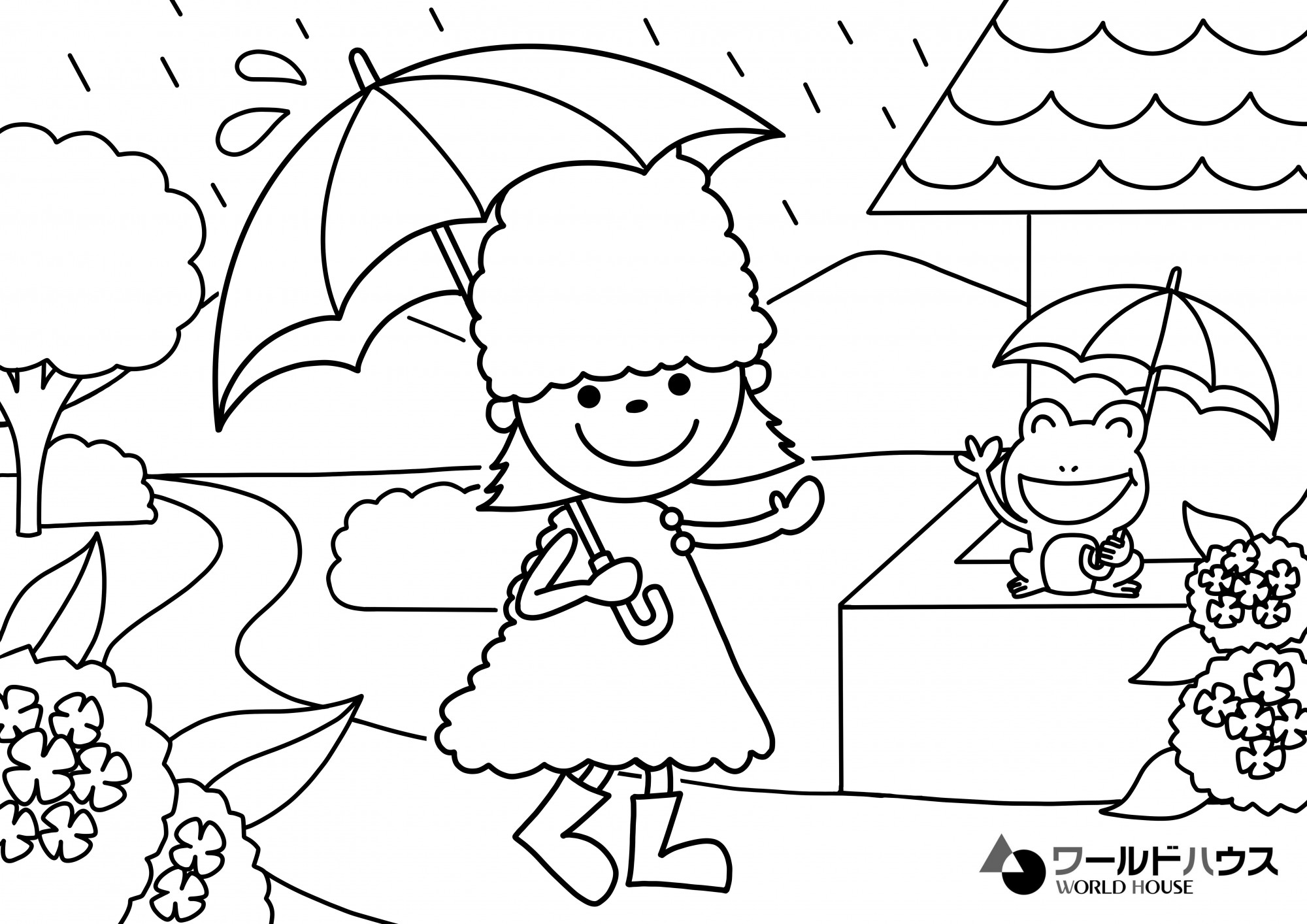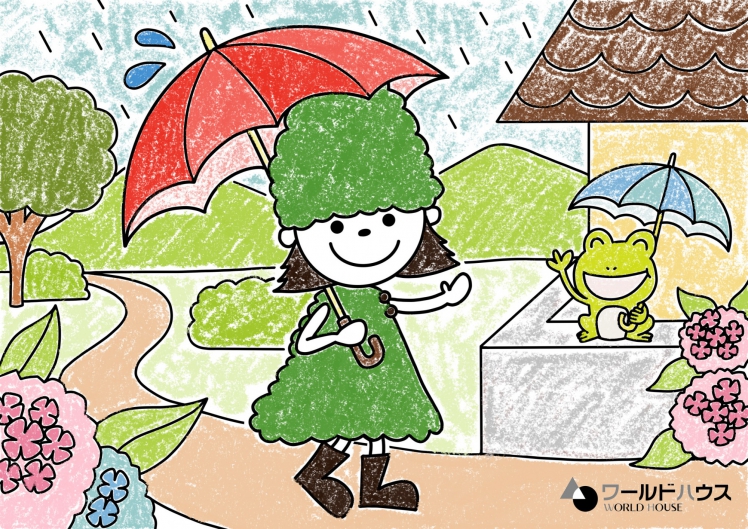 雨の日も増えてきて、いよいよ梅雨入りを感じさせる季節。傘をさしてお散歩に出かけたひのきちゃんは、途中でお友達のカエルくんに出会います。楽しくおしゃべりすれば、雨の日も楽しくなりますね!