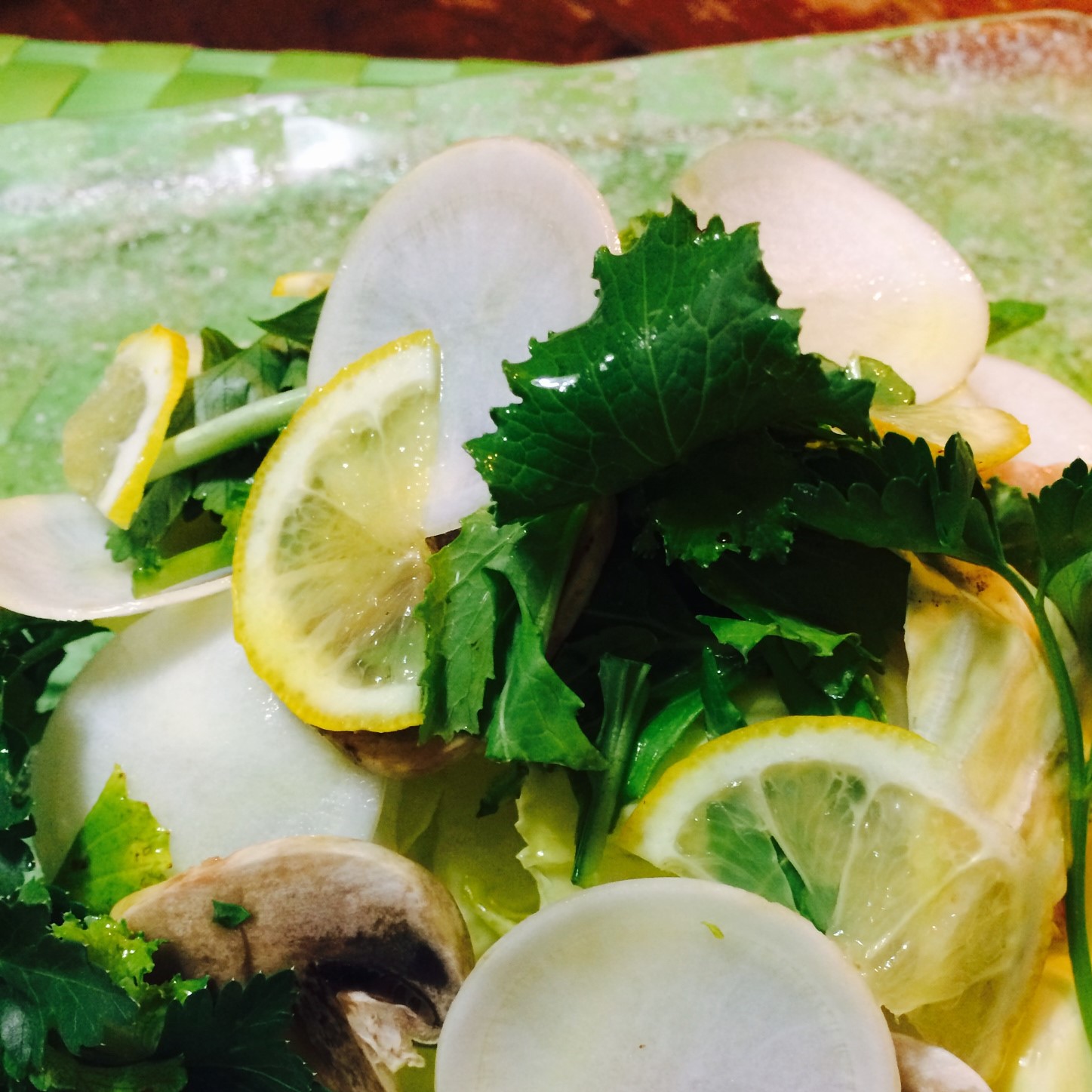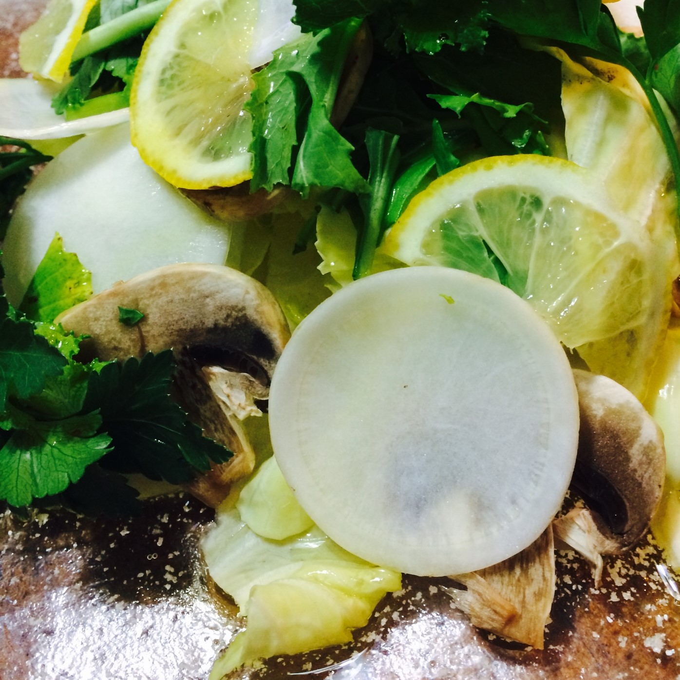 マッシュルーム…汚れをふき取り、石づきを切り落としてスライスする