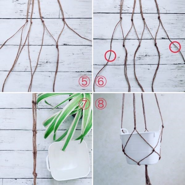 ⑦ 鉢の高さに合わせ⑤⑥を繰り返す。最後は8本まとめて結ぶ。