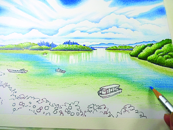 水彩色鉛筆を使ったWEBミニレッスン<風景画>