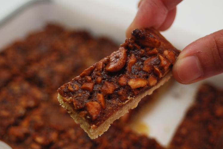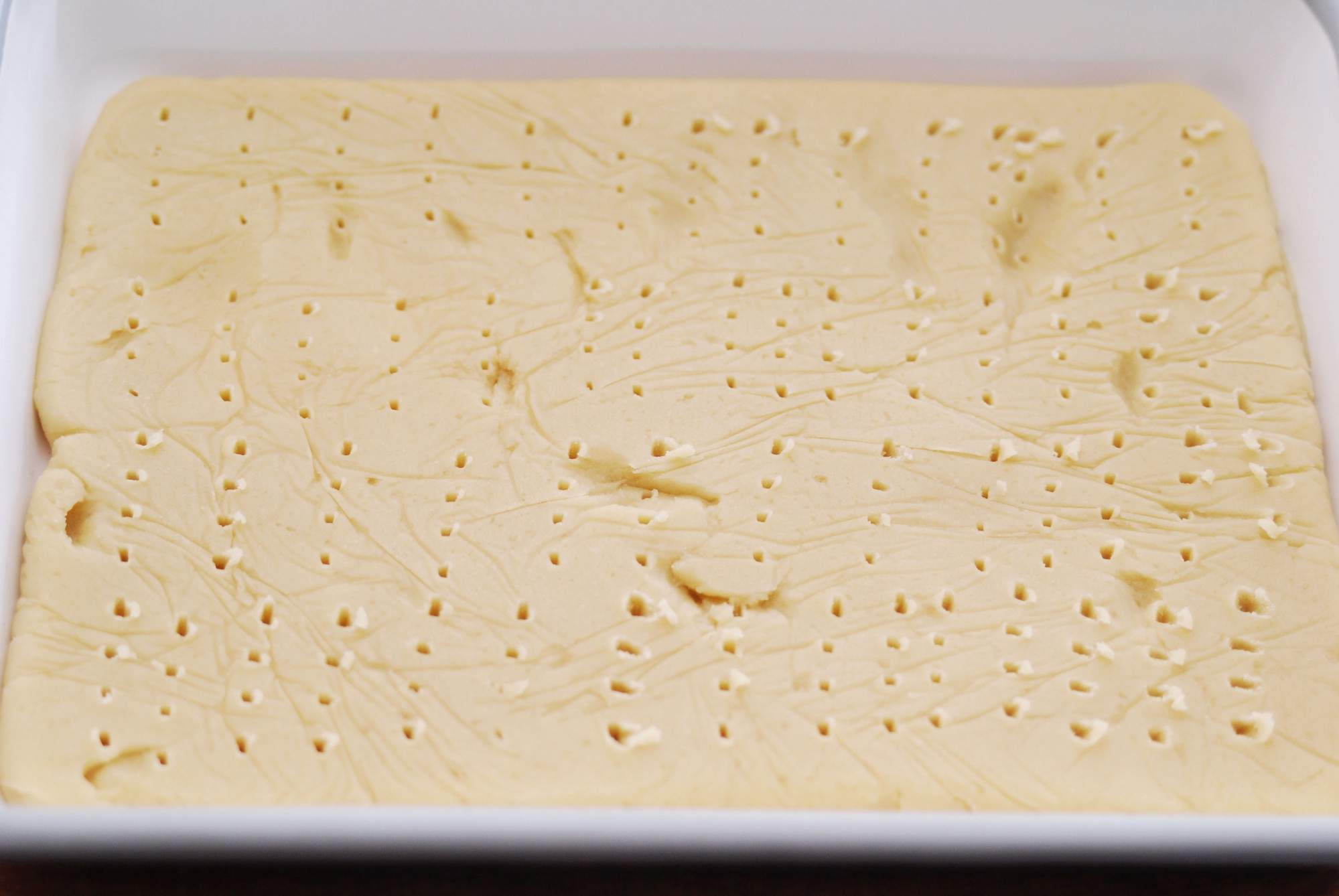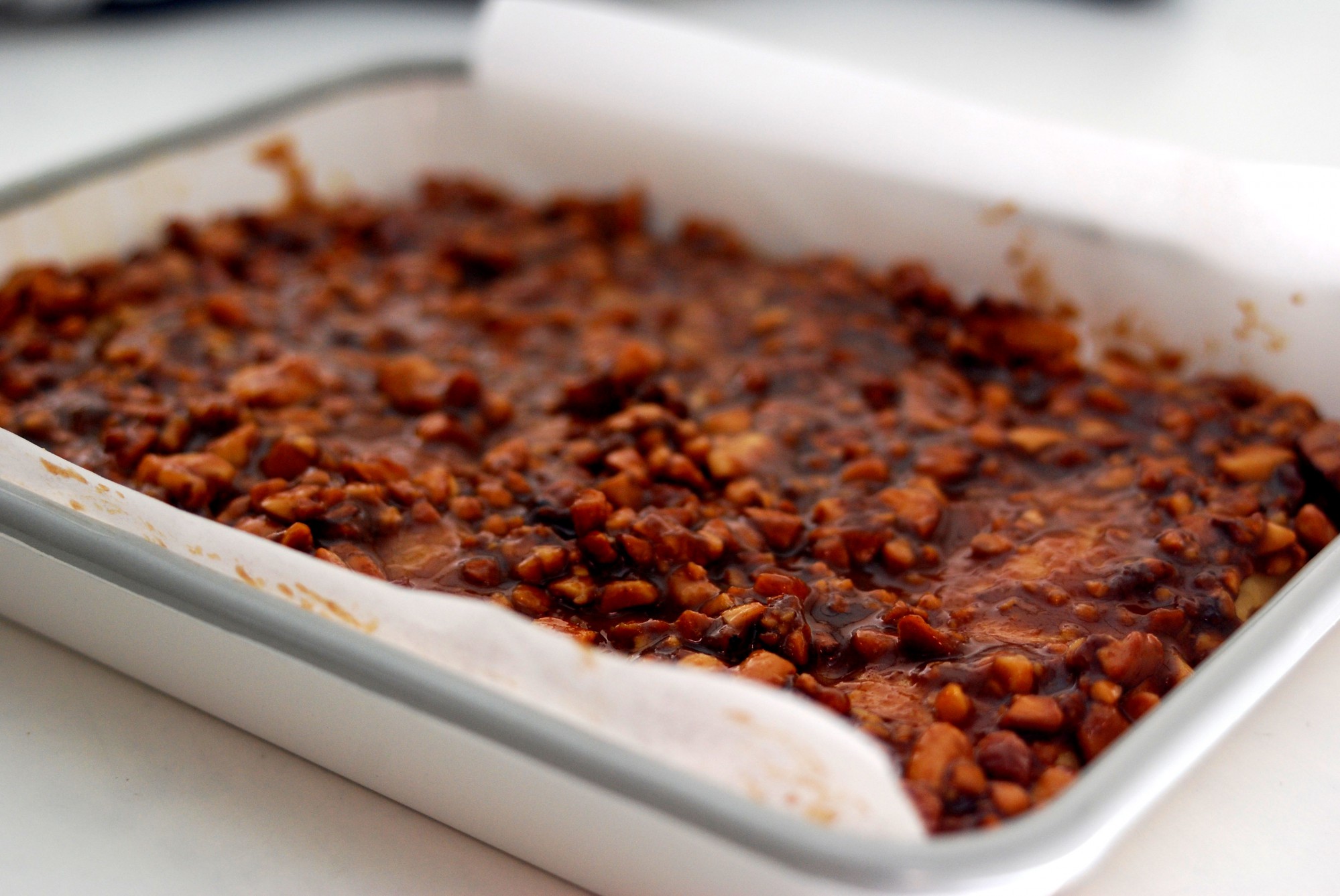 ソースができたらクッキー生地の上にまんべんなく広げて、再びオーブンで20分程度、焼き色がつく程度まで焼きます。