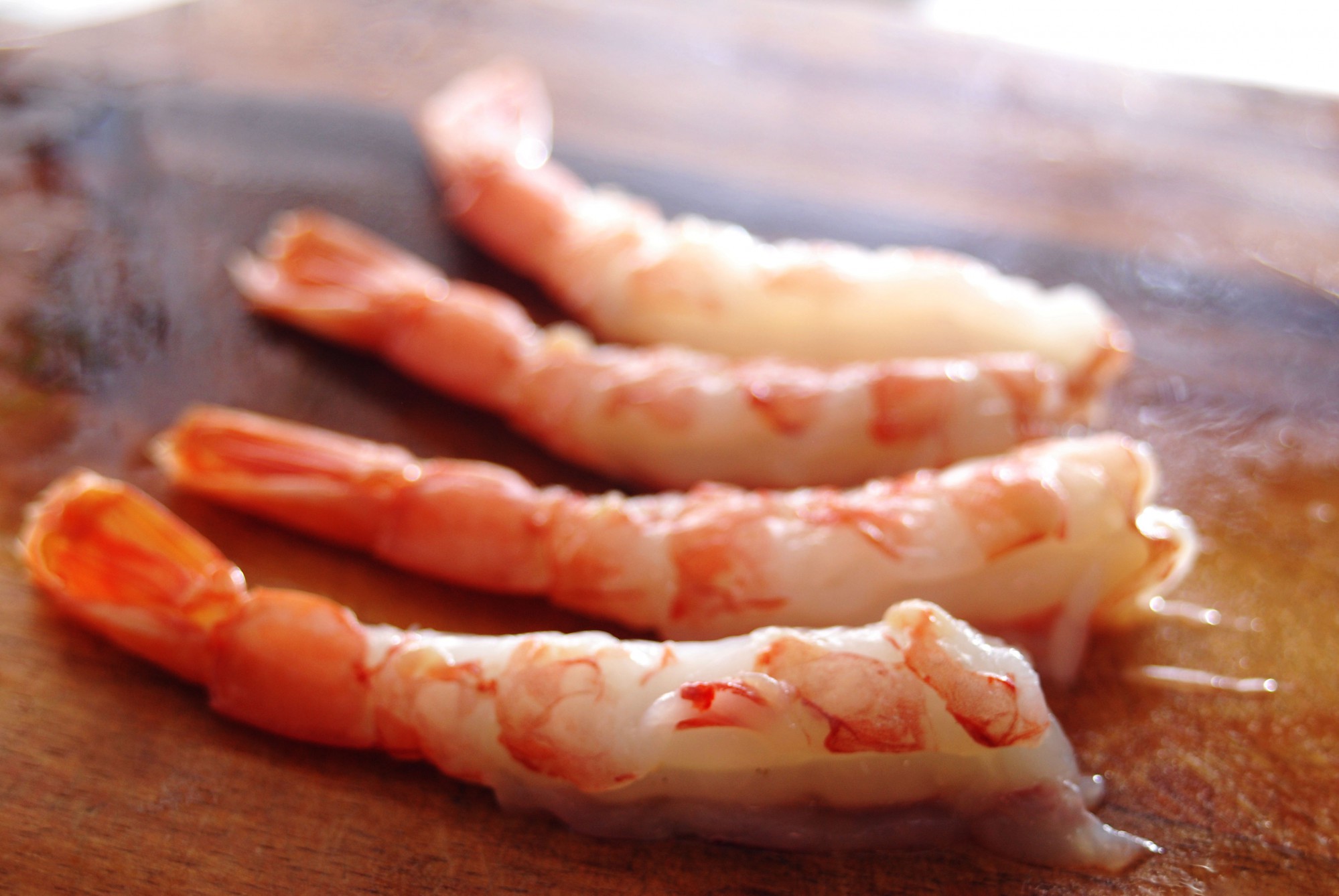 ピーナッツは、フロランタンと同じ要領で細かく砕いておきます。海老はあらかじめ頭と殻を取り除き、背中を開いてワタも除去しておいてください。殻は捨ててもいいですが、頭は捨てずにとっておいてくださいね。ニラは3~4cmにカットしておきます。