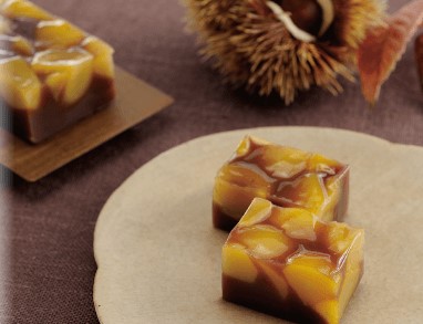 栗むし羊羹は練り上げられた羊羹ではなく、その名の通り蒸し上げられた羊羹です。そのため食感はもっちり滑らか。ゴロゴロと入った栗が食感にアクセントを加えてくれます。小豆の色と栗の黄色が目にも鮮やかで、お茶の時間が華やかになりますよ。