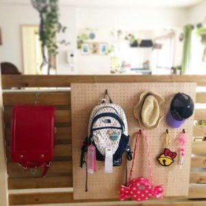 有孔ボードは、等間隔に穴が開いた板のこと。穴にフックを差し込むだけで、立派な収納アイテムができあがります。
