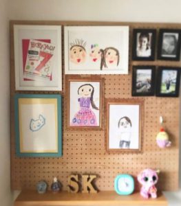 我が家では、壁に立てかけた有効ボードを子供の作品スペースにしています。「ここに飾るモノ以外は処分」というルールのおかげで、作品の管理が楽になりました。