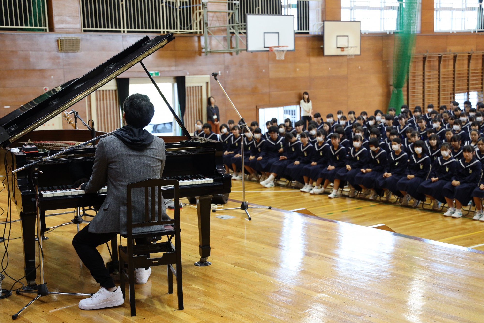 命の大切さを学ぶ授業を1年間続けてきて、まとめとしてライブをしてほしいという依頼だったんです。僕が高校3年生の時、母が乳がんで亡くなっていまして、母のことを歌った曲があります。先生はその曲を生徒たちに聞かせたいと。