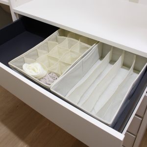 例えば下着や靴下などの小さな衣類は、浅型の引き出しに収納しましょう。下着や靴下などはたたむととてもコンパクトです。