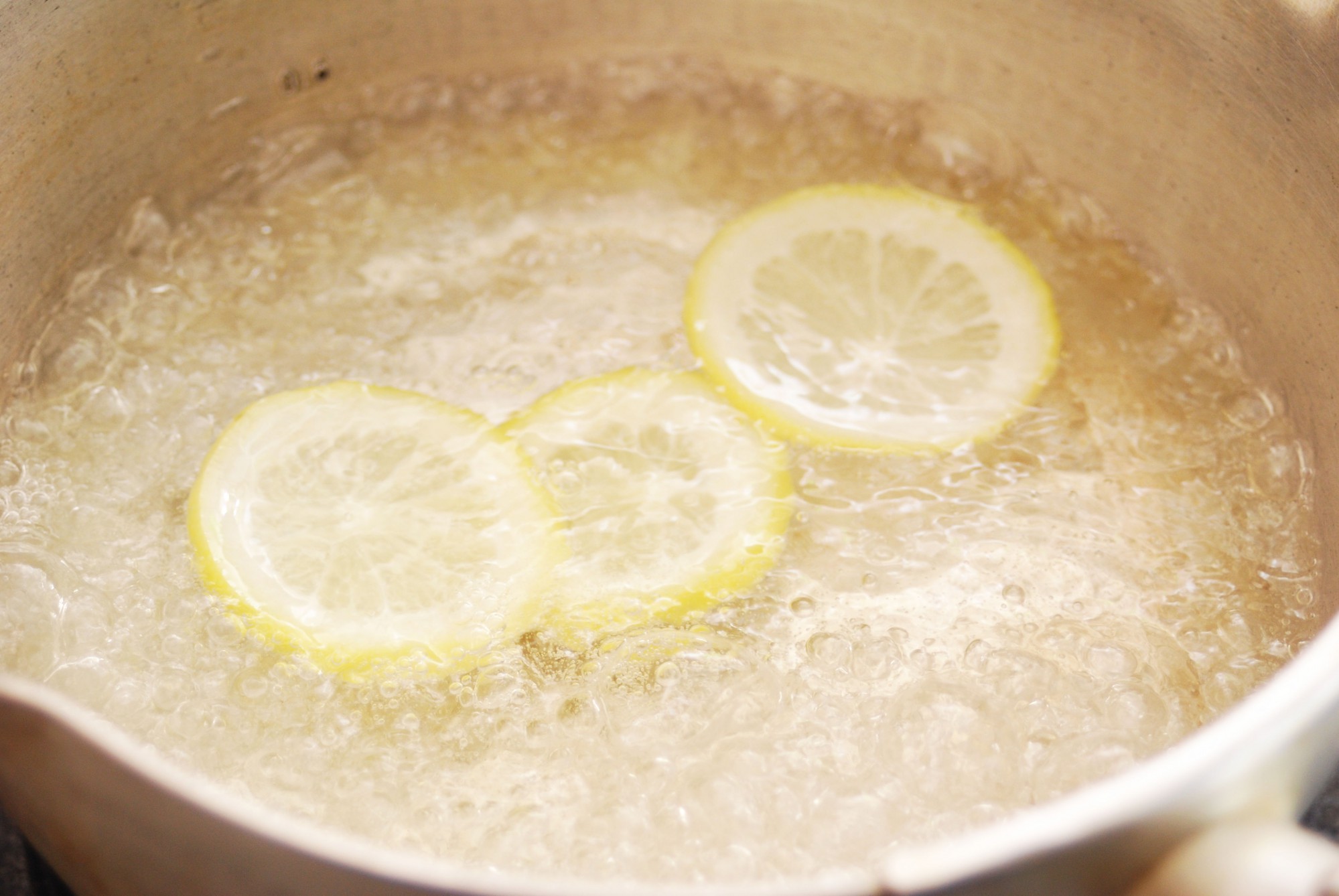 砂糖が煮詰まってきたら、茶色く色づき始める前に鍋を火からあげ自然に冷まします。砂糖が茶色くなるのはカラメル化し始めた証拠で、ここからさらに火にかけると焦げやすくなるので注意しましょう。