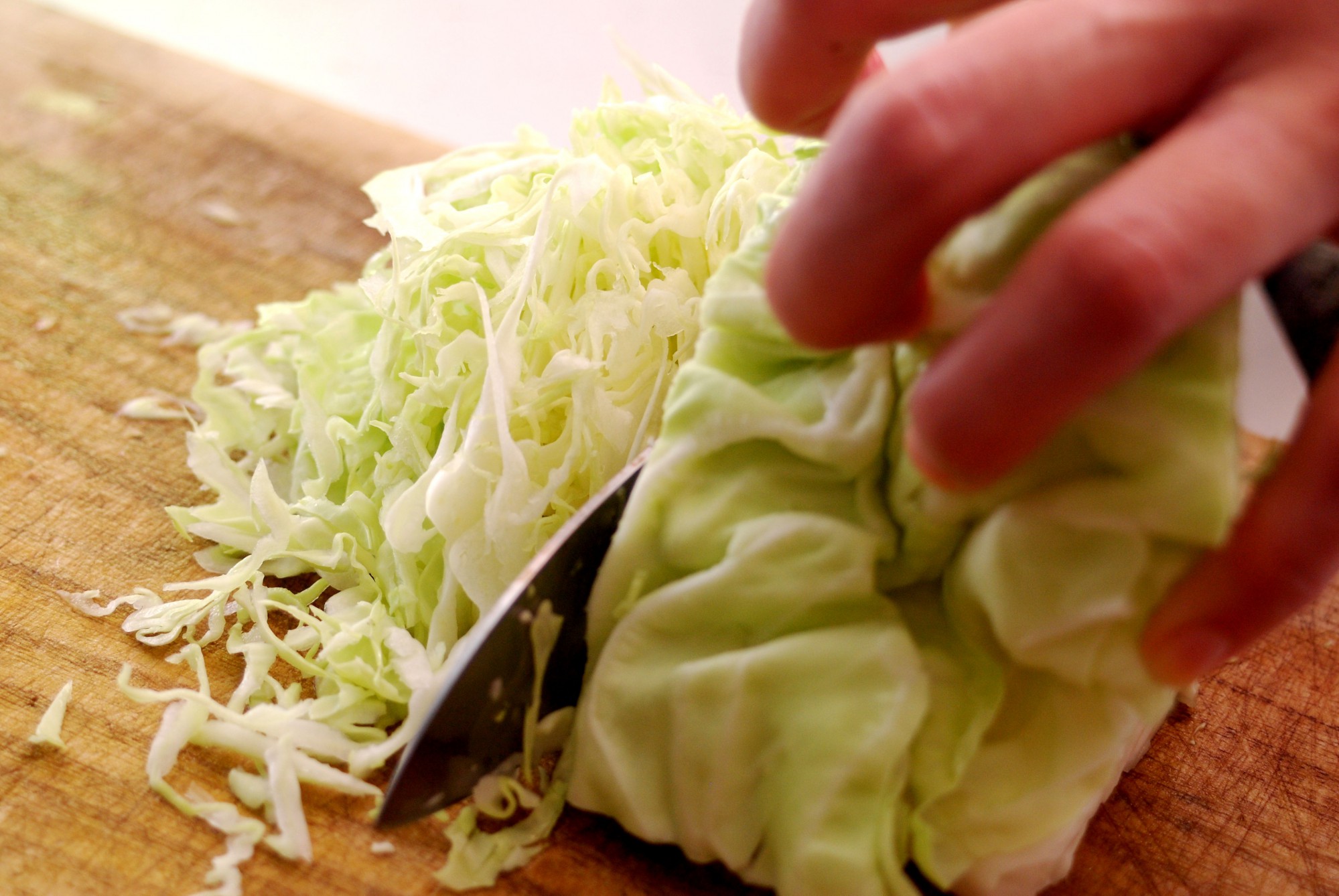 ②キャベツを千切りにする