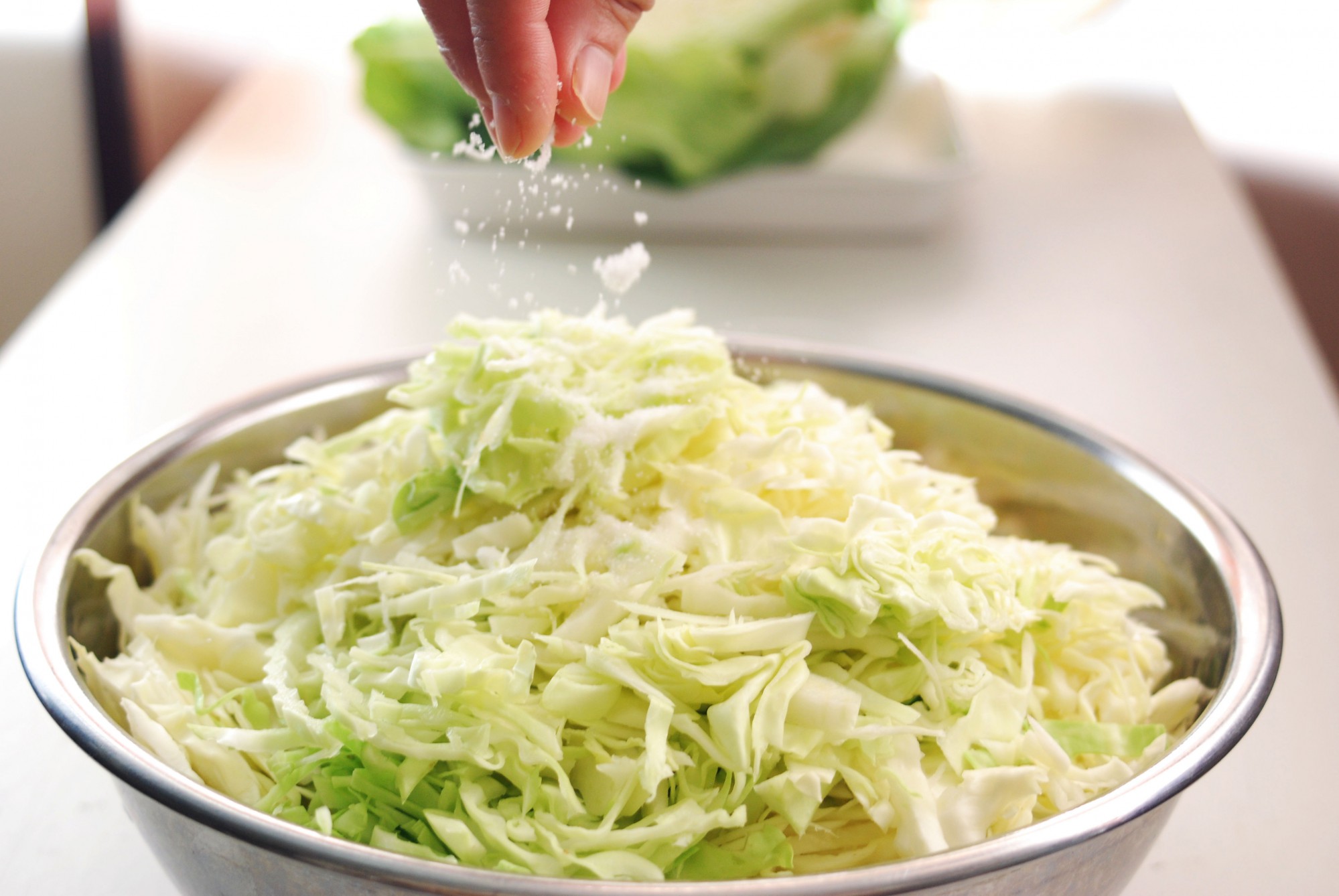 ザワークラウト作りに必要なのは、基本的にキャベツと塩だけです。