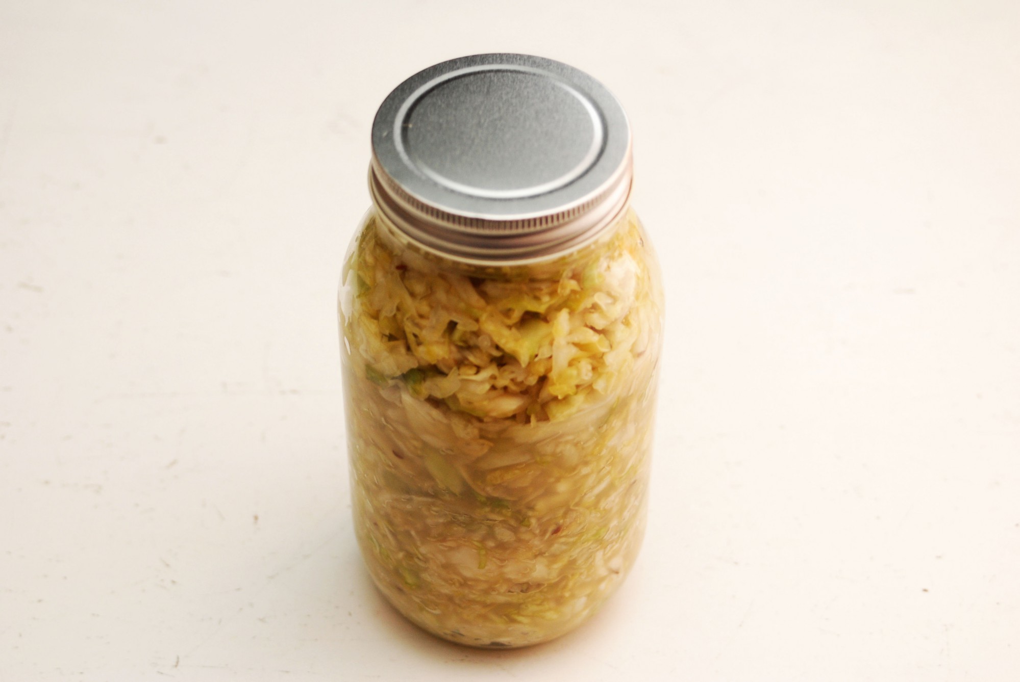 あとはよく洗ったガラス瓶などに移し替え、冷蔵庫で保存してください。すぐに食べられますが、このままさらに1~2週間ほど落ち着かせるといっそう食べやすくなります。