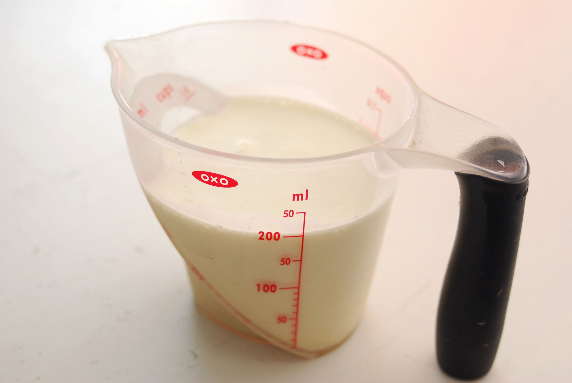 自家製バター作りに使うのは生乳だけです。生乳とは生クリームのことで、今回は200ml使います。