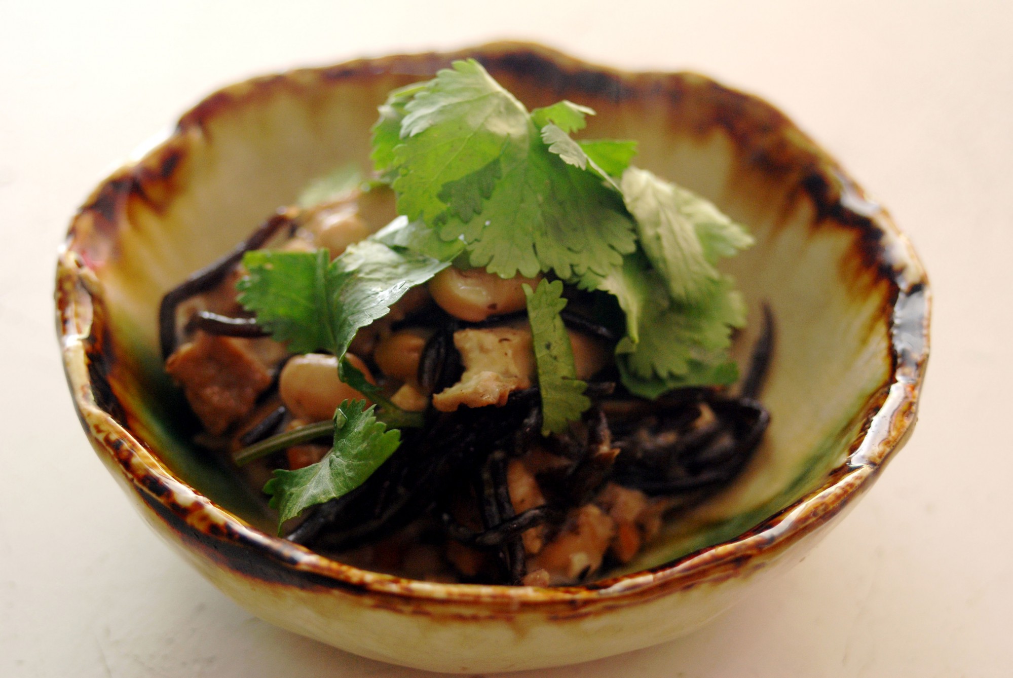 - 皿に盛りつけたら、食べやすい長さにカットしたパクチーをのせて完成。