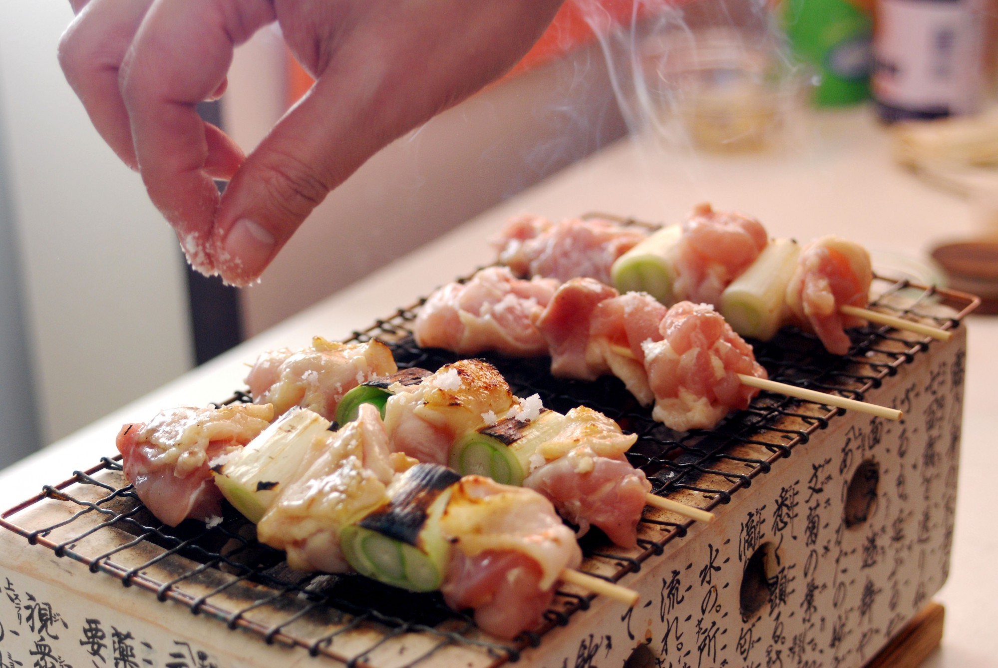 焼き鳥を焼くには炭火を使うのが理想的ですが、魚用グリルを使ってもいいですし、焼き鳥用の電気コンロを使っても構いません。半生にならないようしっかり火を通す必要がありますが、火を通し過ぎるとパサパサになってしまうので注意。