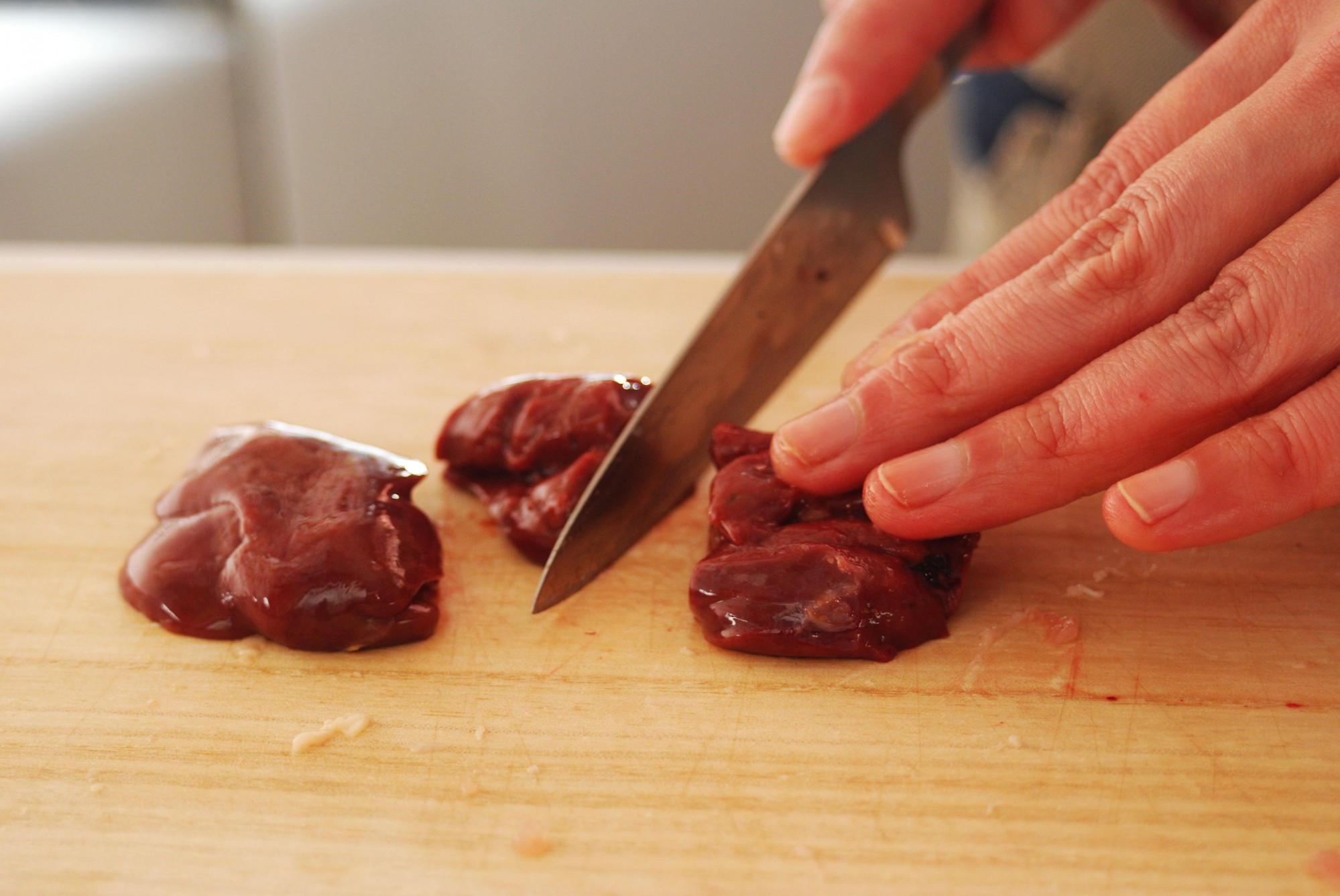 レバーも同様に、血を抜くと味がよくなります。もも肉と同じように食べやすい大きさにカットしますが、その際に動脈に沿って包丁を入れると血の塊が出てくる場合があります。切り分ける際にできるだけ血を取り除いておきましょう。