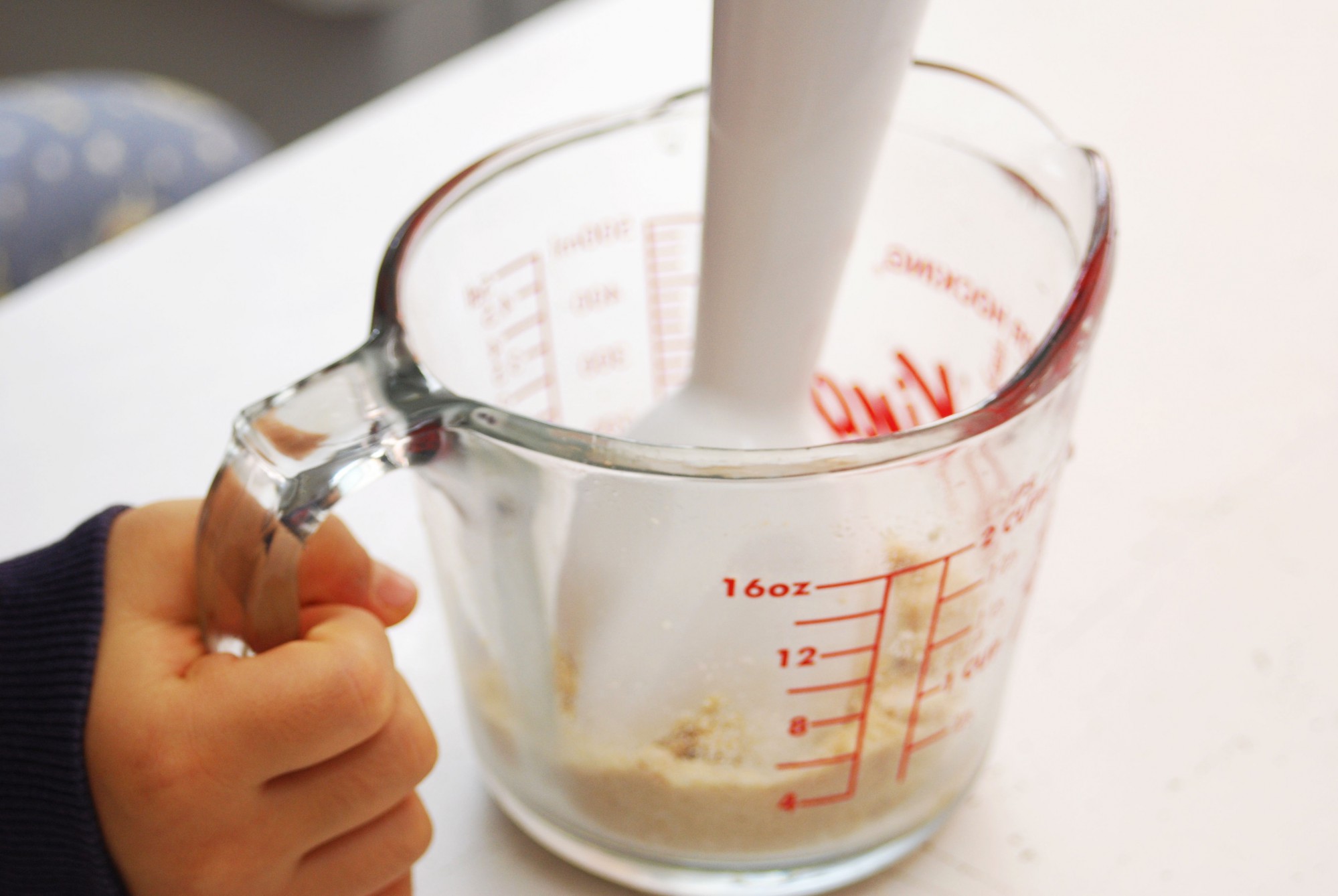 今回、ピーナッツを砕くのにハンドブレンダーを使用しました。ハンドブレンダーやミキサーなどを使えば簡単で早く作れますが、ない場合はすり鉢などでも構いません。すり鉢の場合はハンドブレンダーよりも手間がかかりますが、より滑らかで香り豊かな風味になります。